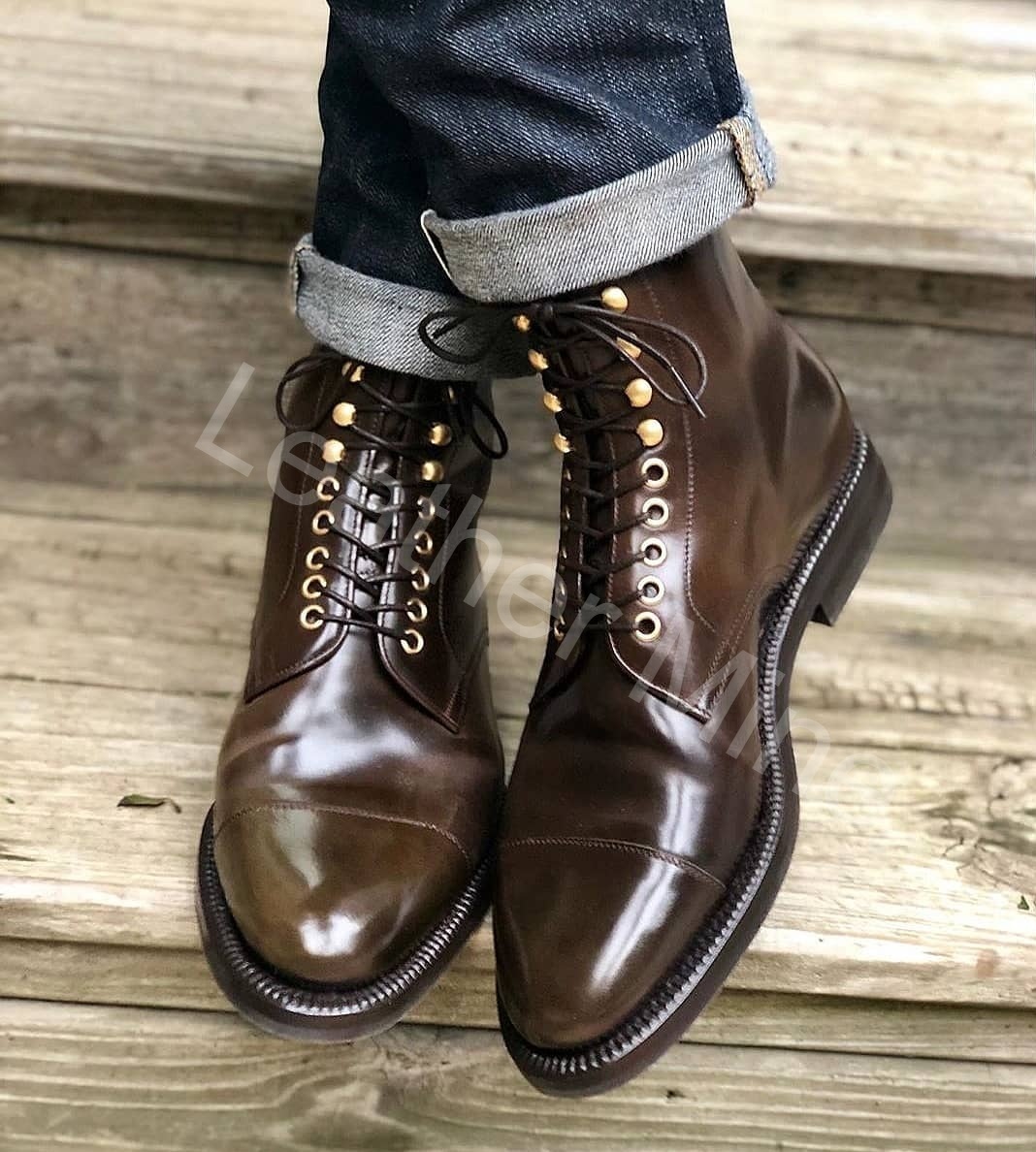 Men's Handmade Brown Leather Derby Boots, Custom Made Dress Shoes