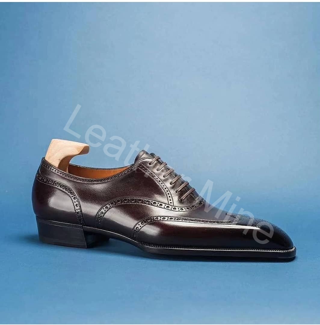 Black Leather Brogue Oxfords Shoes, High top Leather Shoes For men