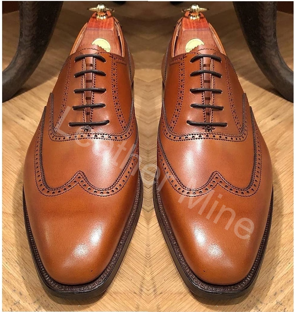 Leather Formal Shoes Mens, Handmade Tan Wingtip Monk Genuine Leather Shoes