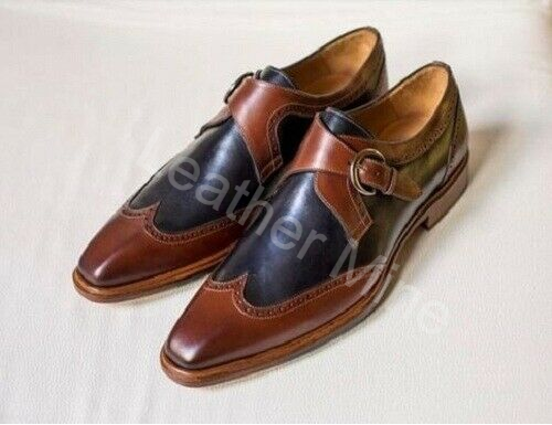 Leather Dress Shoes Men's, Handmade Two Tone Monk Strap Dress Shoes