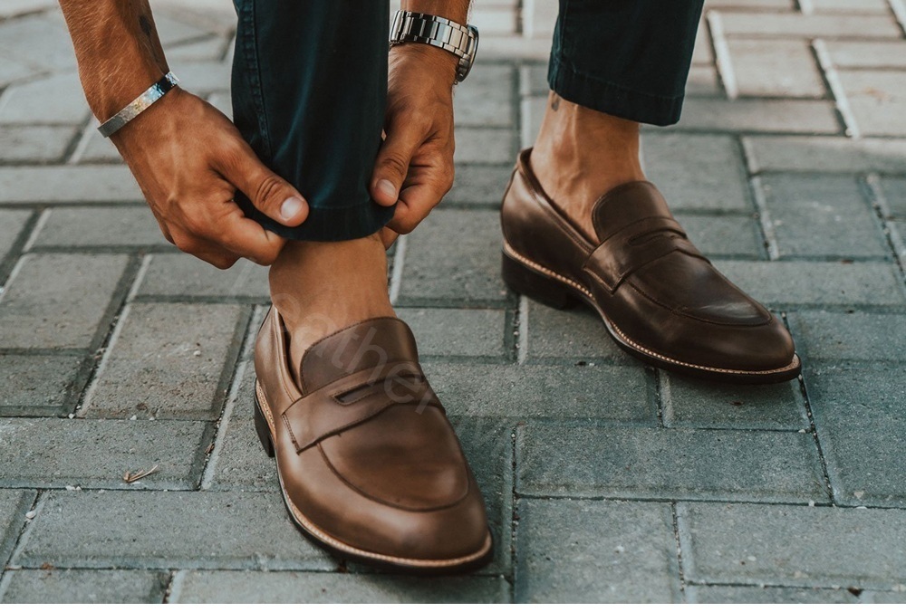 Men's Handmade Brown Leather Loafers Dress Shoes