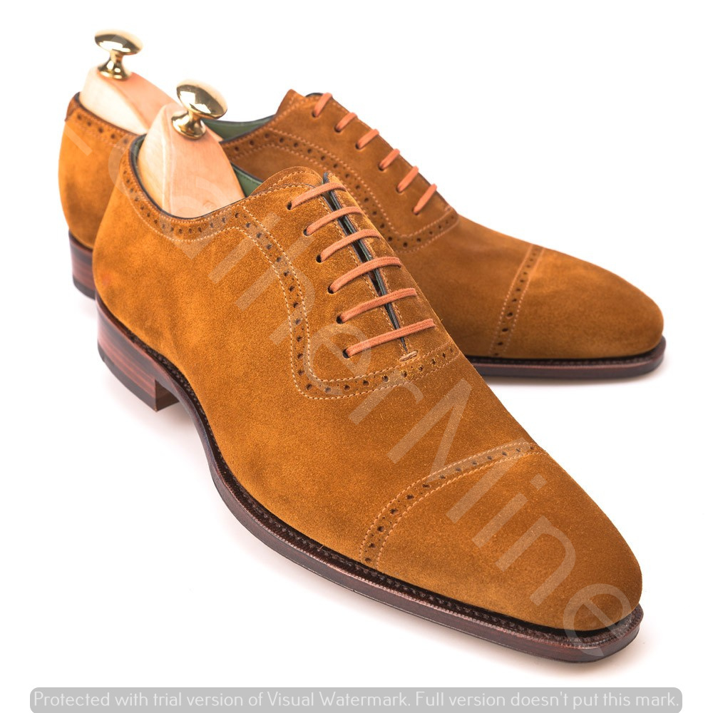 Men's Cognac suede leather dress lace up oxford shoes custom mens shoes
