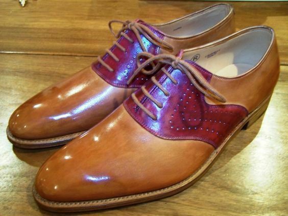 Men's Handmade Brown Leather Two Tone Laces Dress Shoes For Men