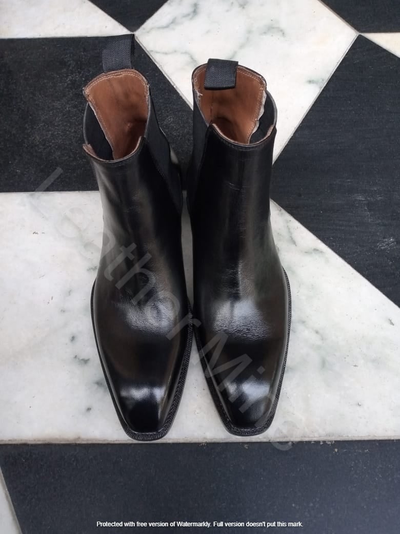 Handmade Black leather Chelsea boots for men, Genuine Leather Chelsea