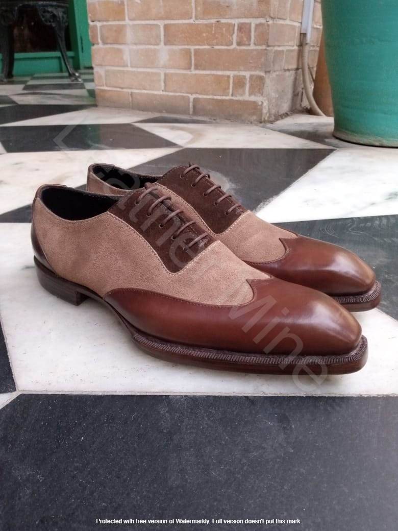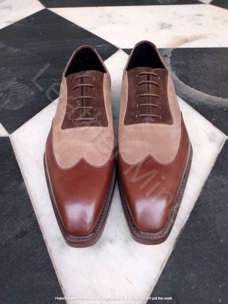 Handmade Two Tone Wingtip Lace Up Dress Shoes For Men, Best Leather Shoes.