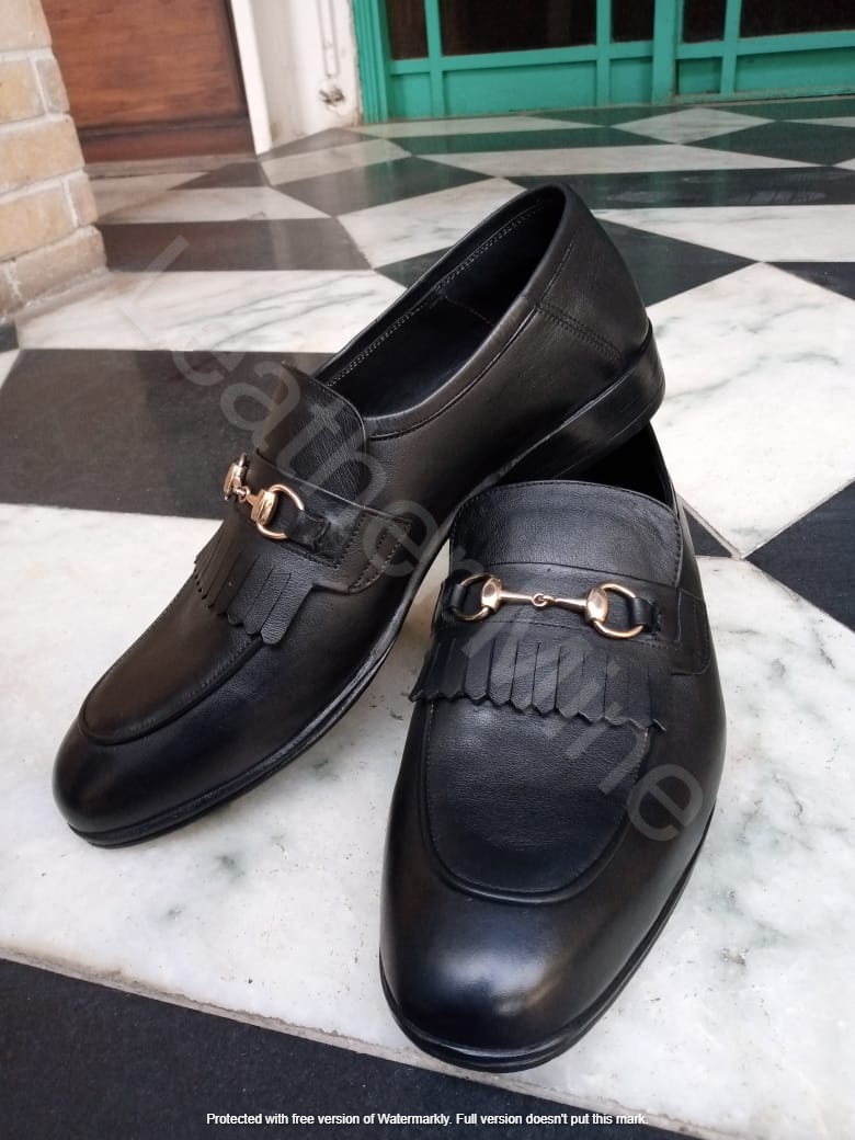 Men's Handmade Black Leather Dress Loafers, Genuine Leather Loafers For Men