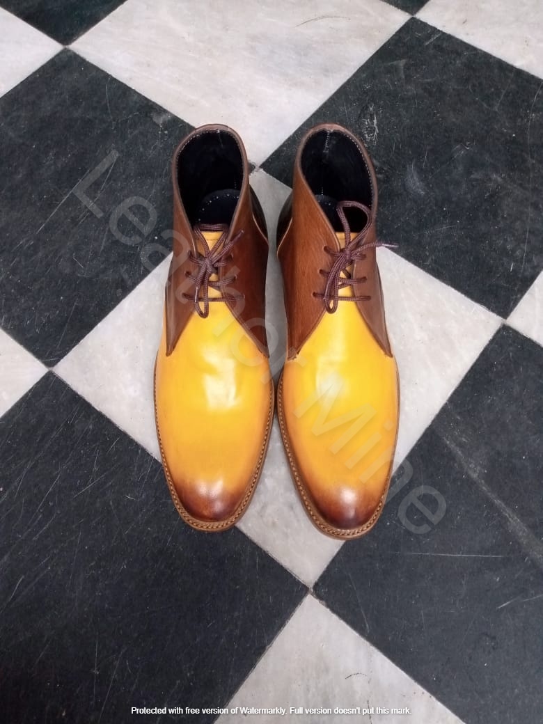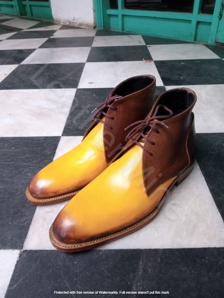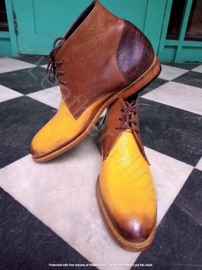 Handmade Yellow Leather Derby Dress Boots For Men, Two Tone Leather Boots