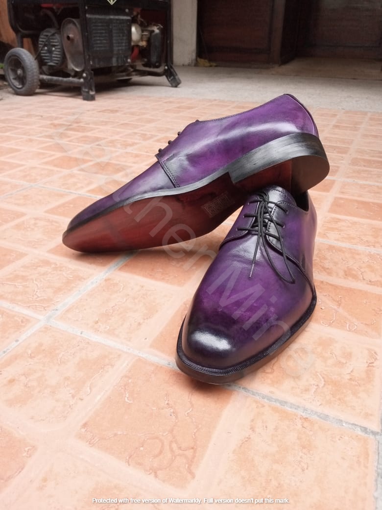 Handmade Purple Patina Derby Dress Shoes For Men, Hand Colored Leather Shoes