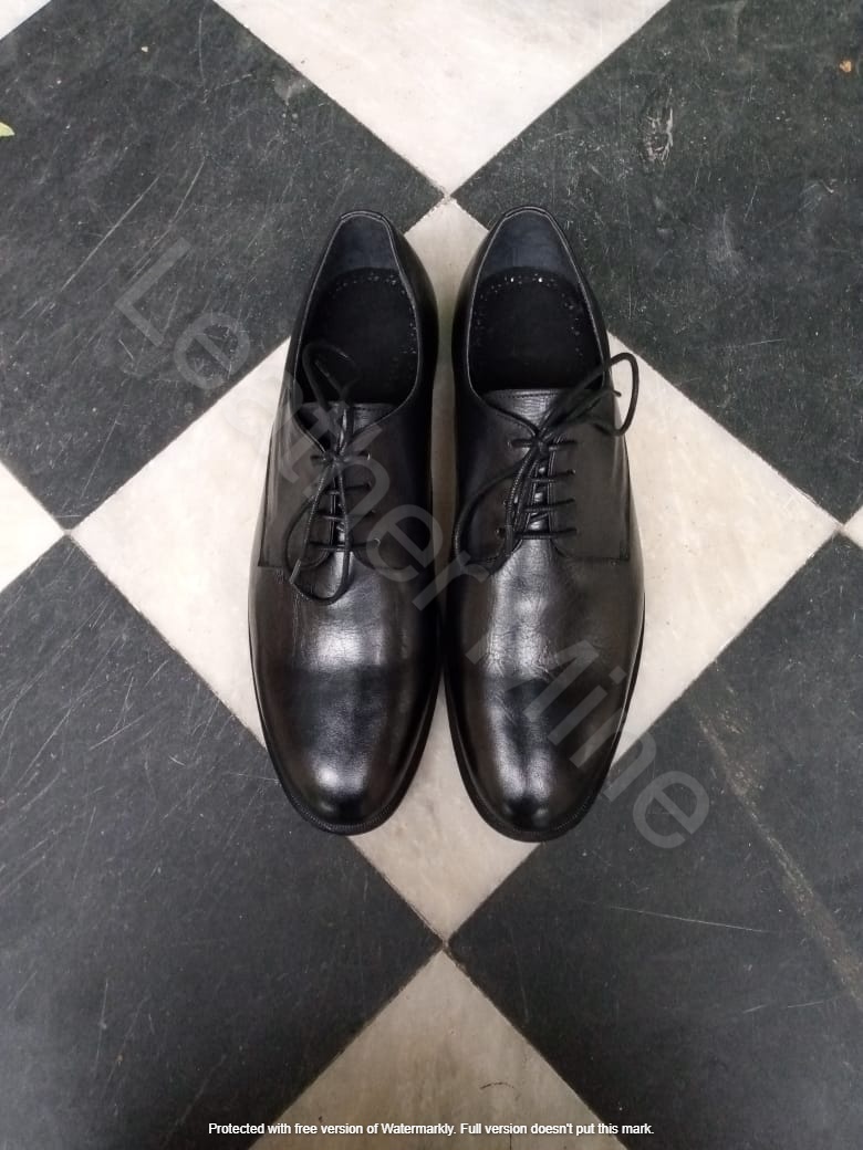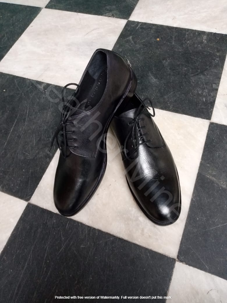 Handmade Black Leather Derby Dress Shoes For Men, Genuine Leather Formal Shoes
