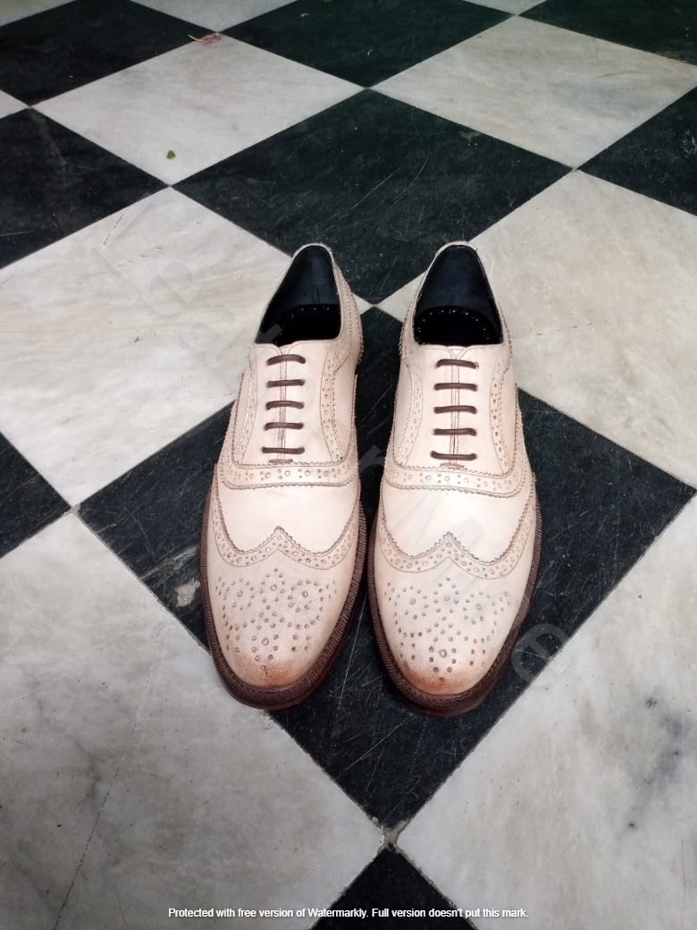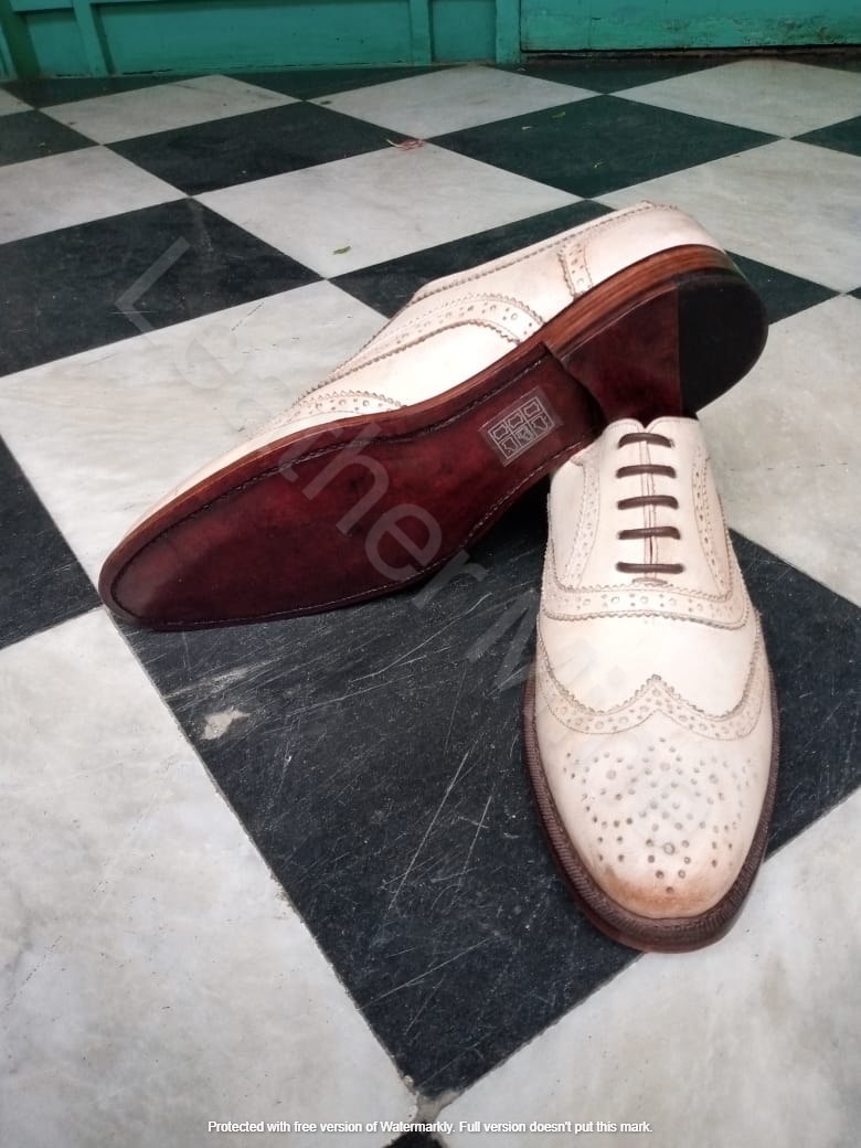 Men's Handmade White leather wingtip shoes, Custom leather lace up dress shoes