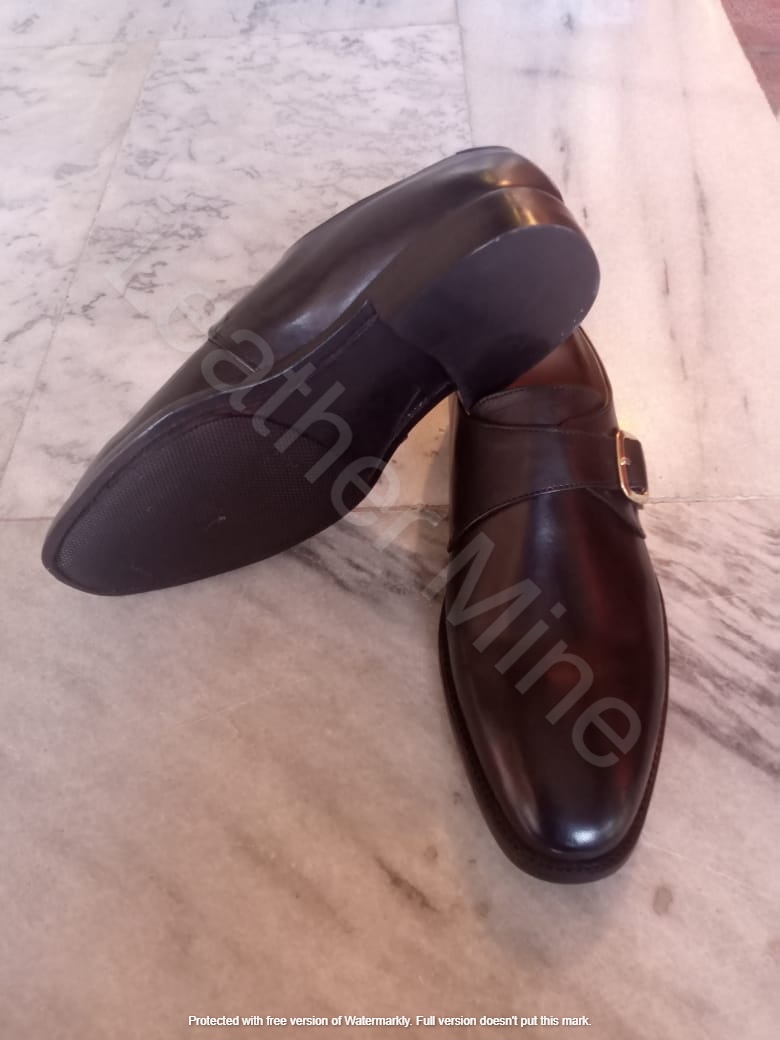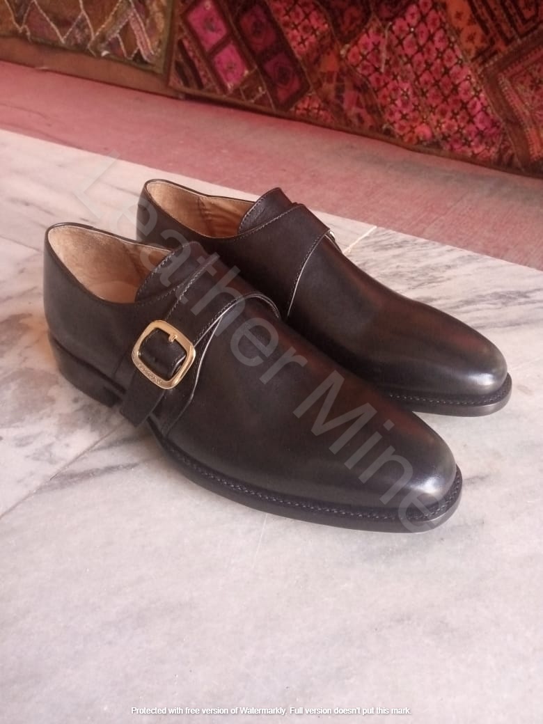 Men's Handmade Leather Monk Strap Dress Shoes, Black Leather Formal Shoes