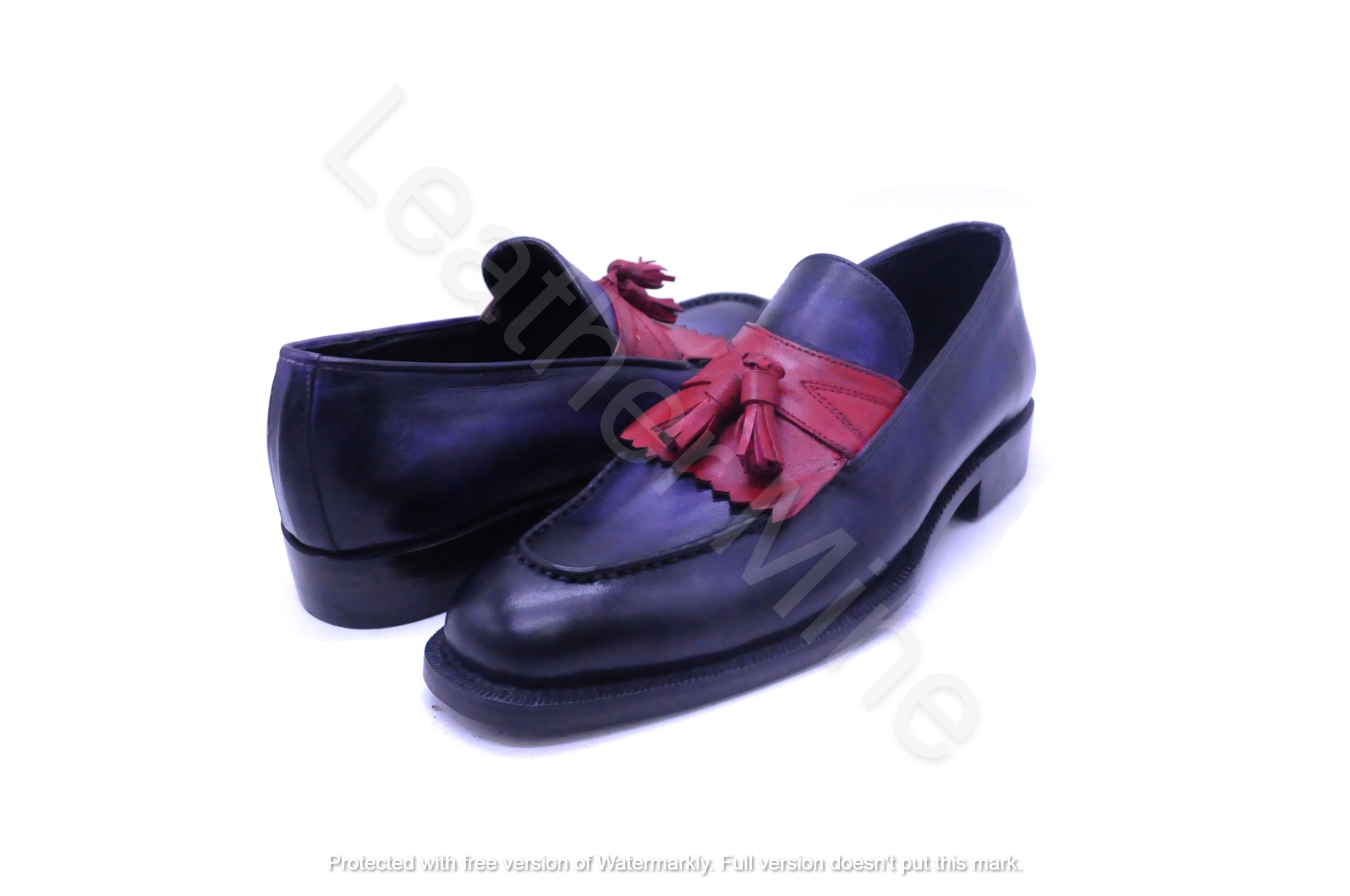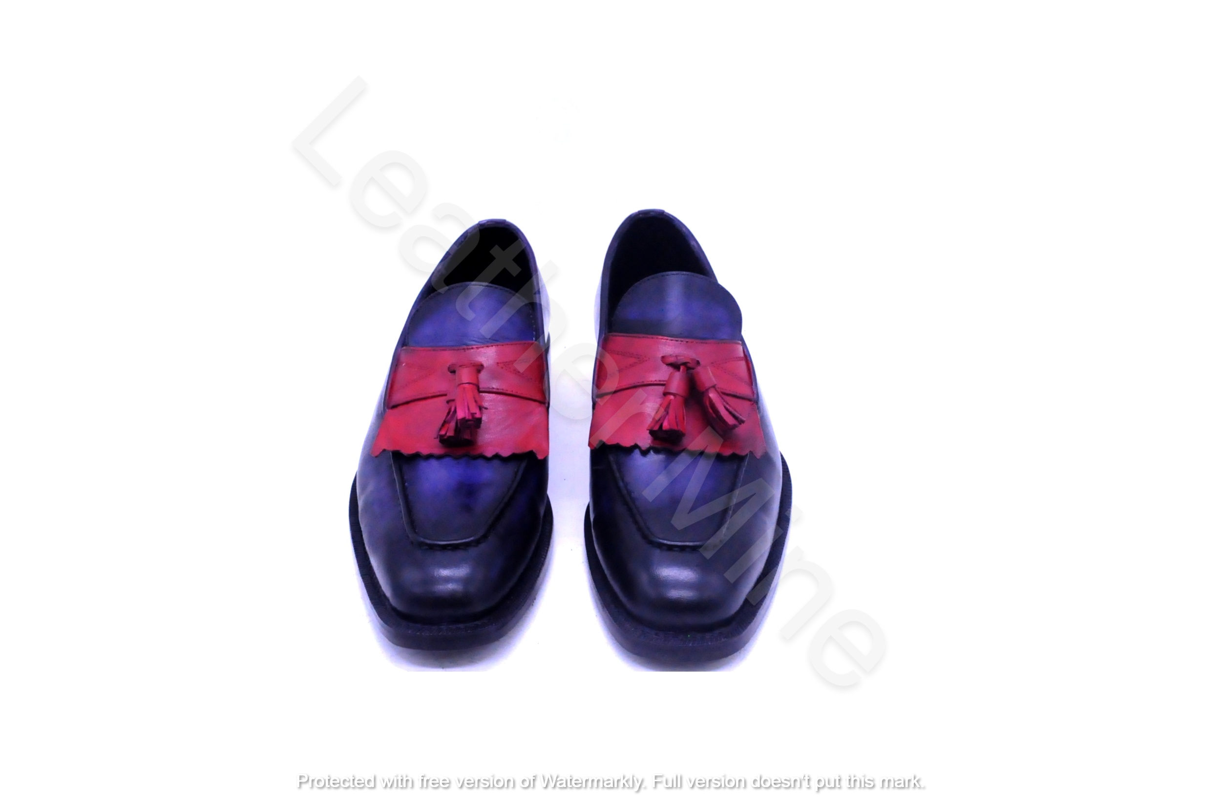 Handmade Blue Leather Tassel Loafers Shoes For Men, Custom Made Dress Shoes