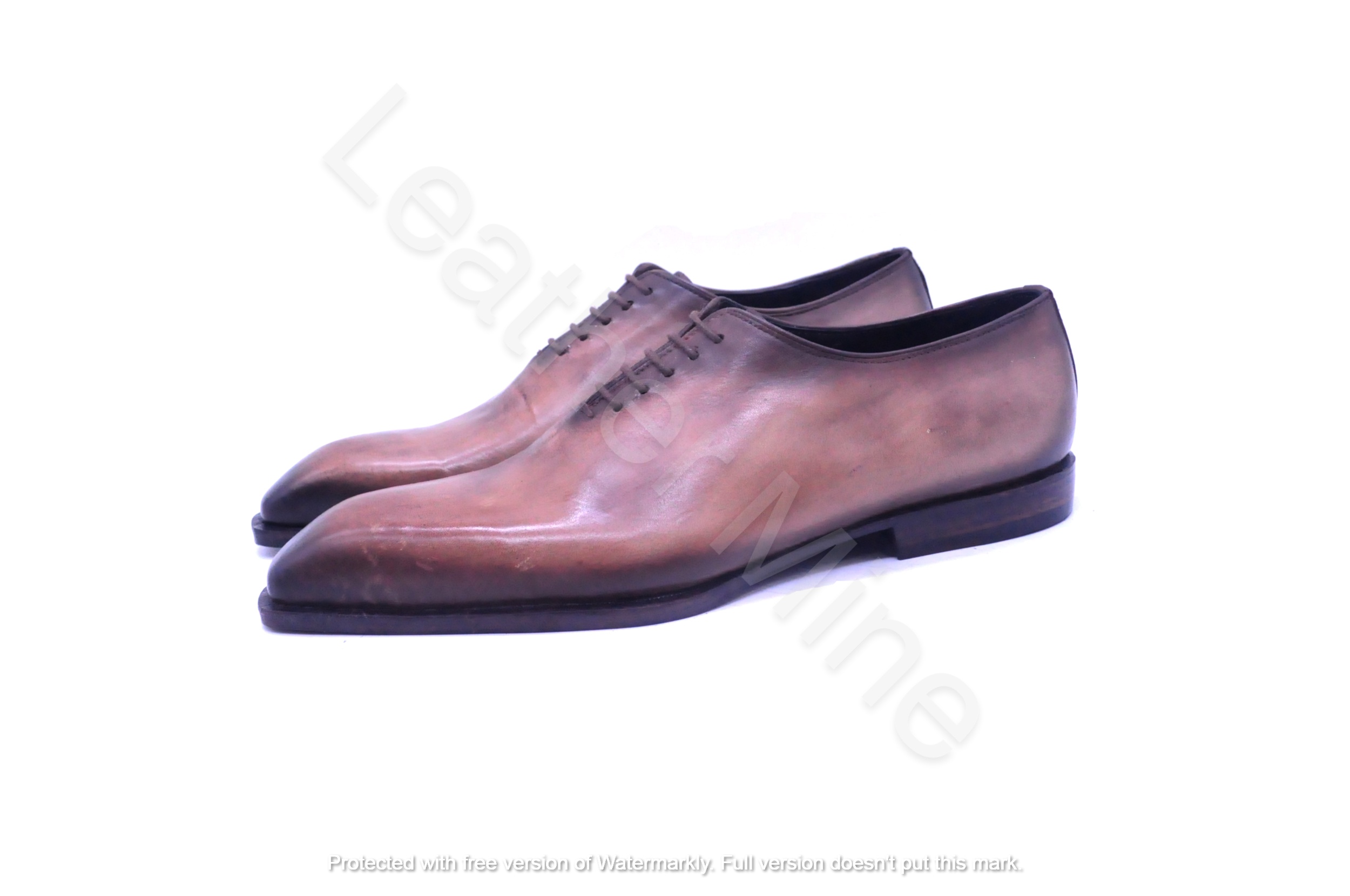 Handmade Men's Brown Patina Leather Oxfords Shoes, Custom Made Dress Shoes