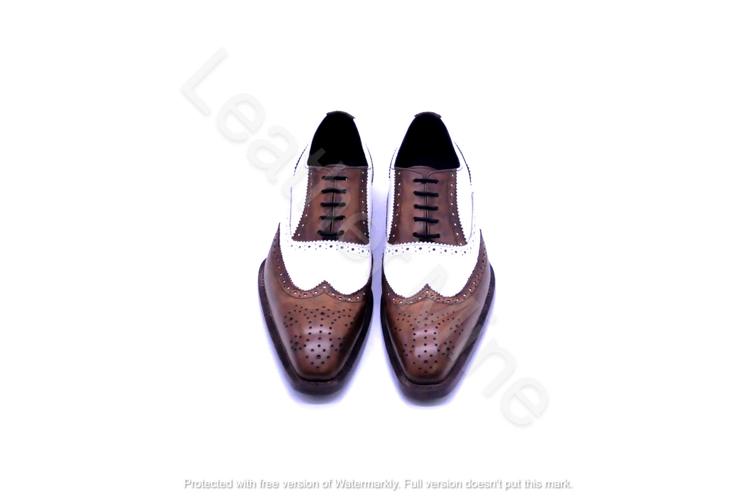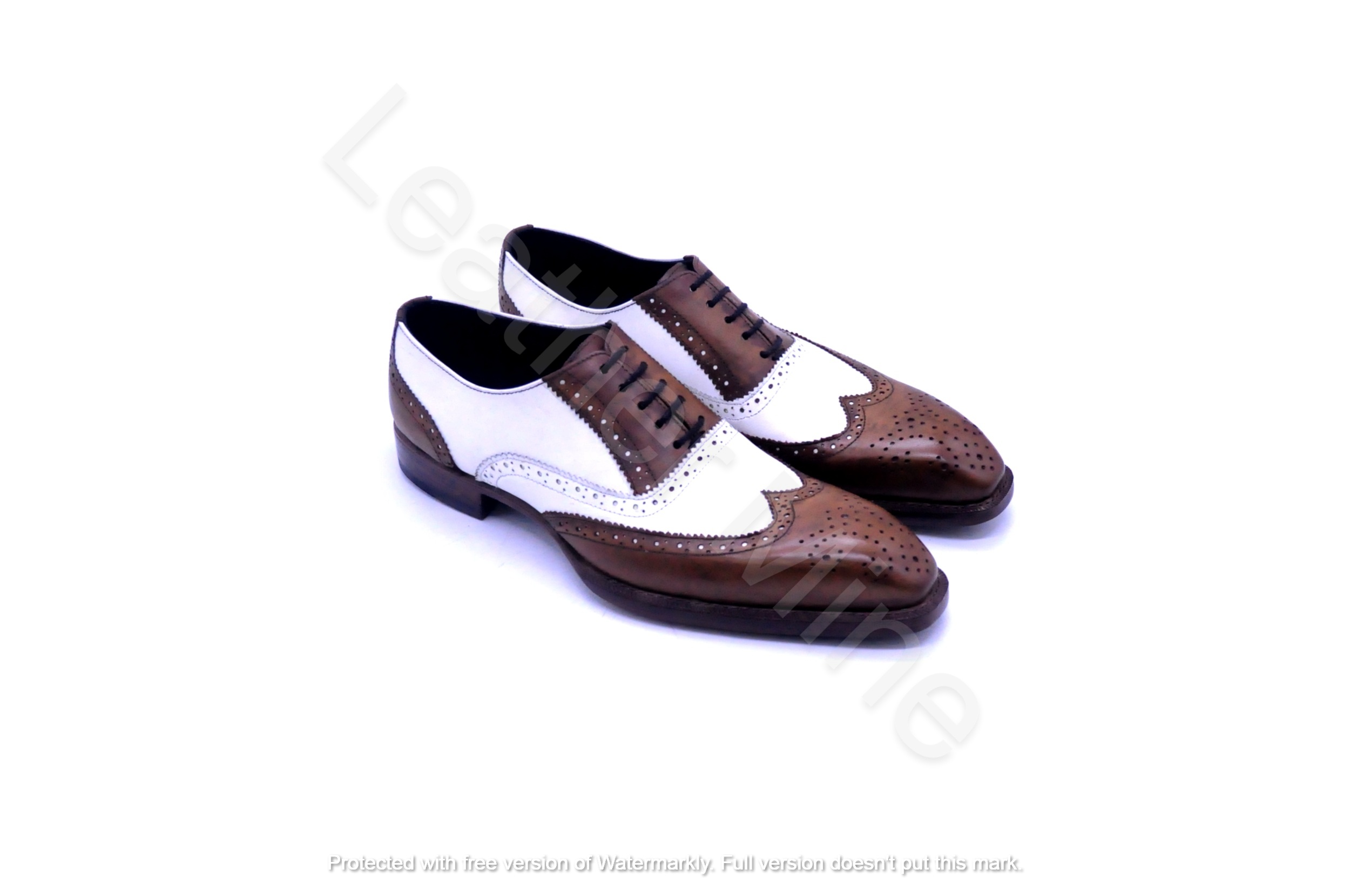Men's Handmade Two Tone Wingtip Brogue Leather Dress Shoes For Men