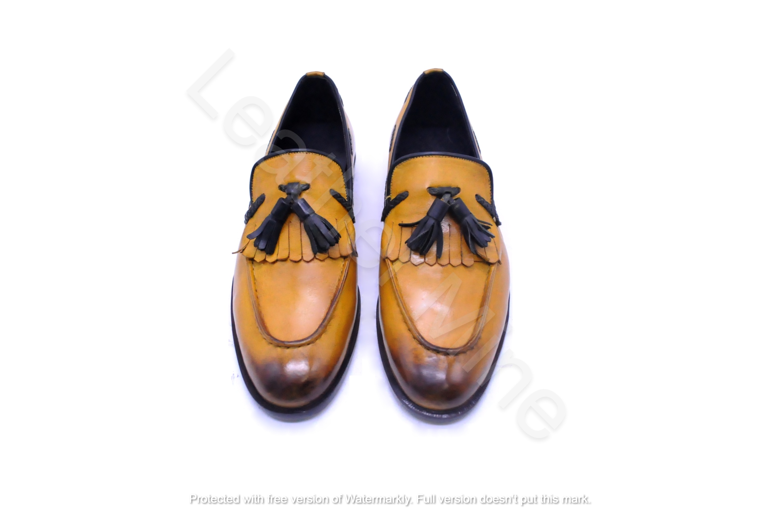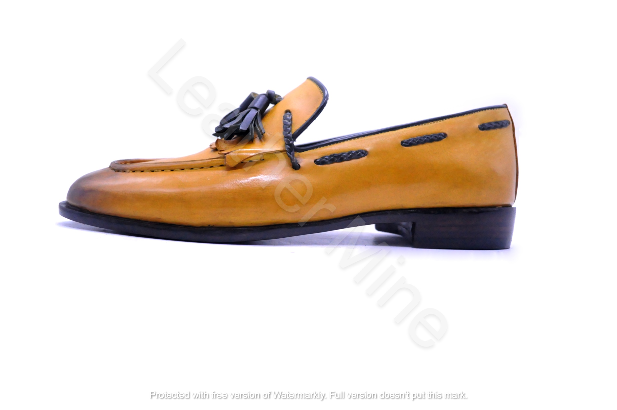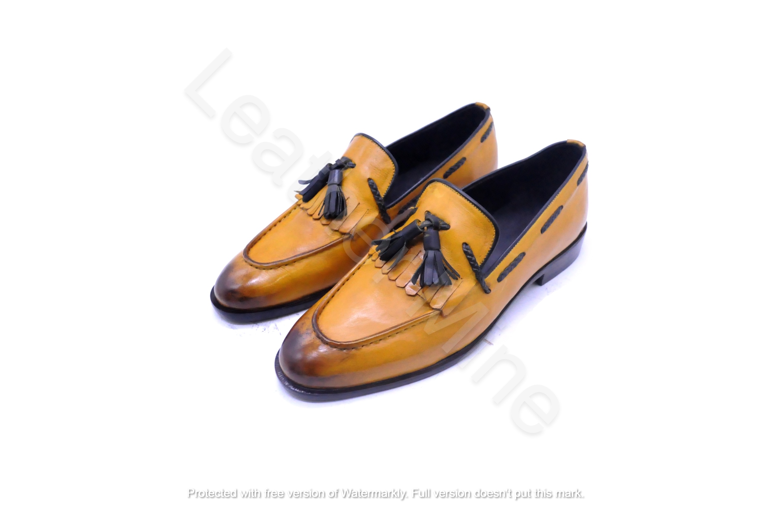 Men's Handmade Yellow Leather Tassel Loafers Dress Shoes For Men