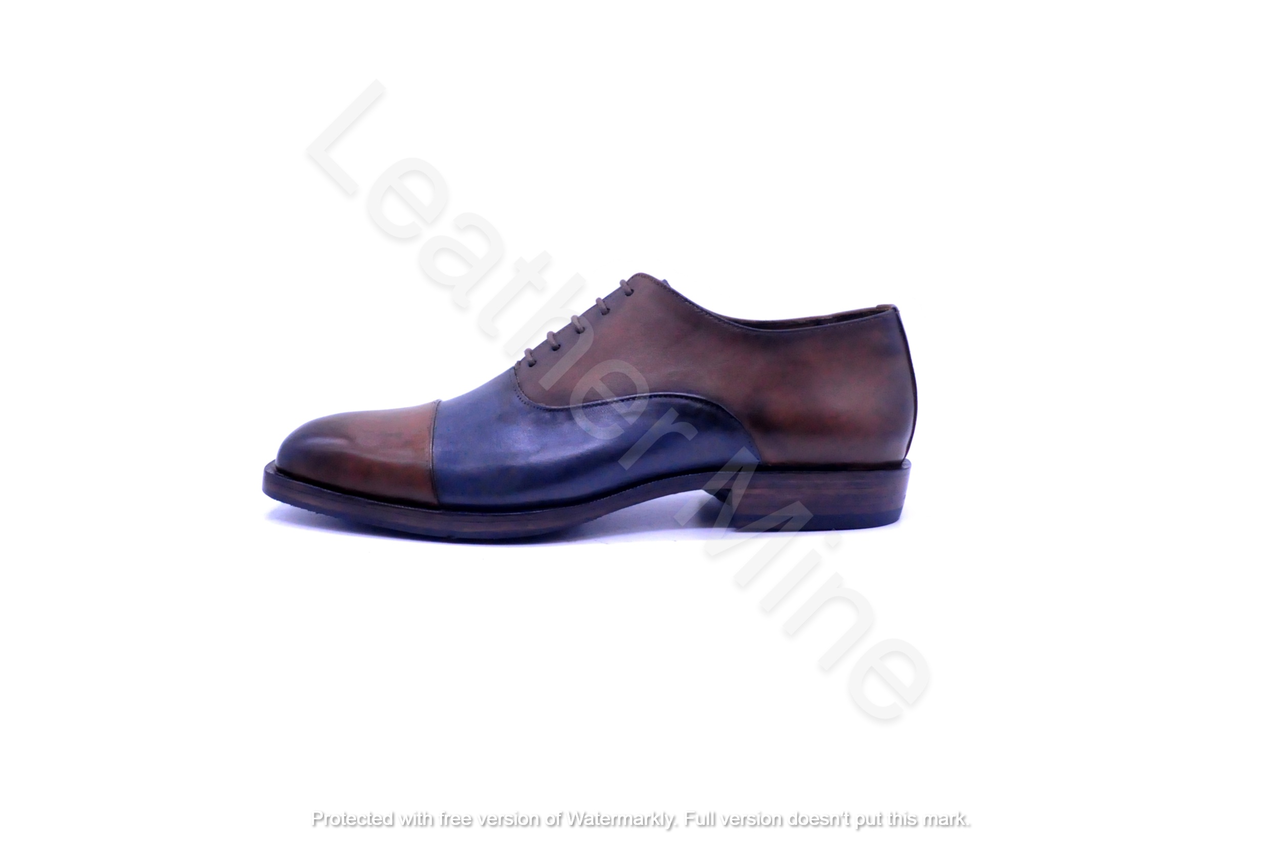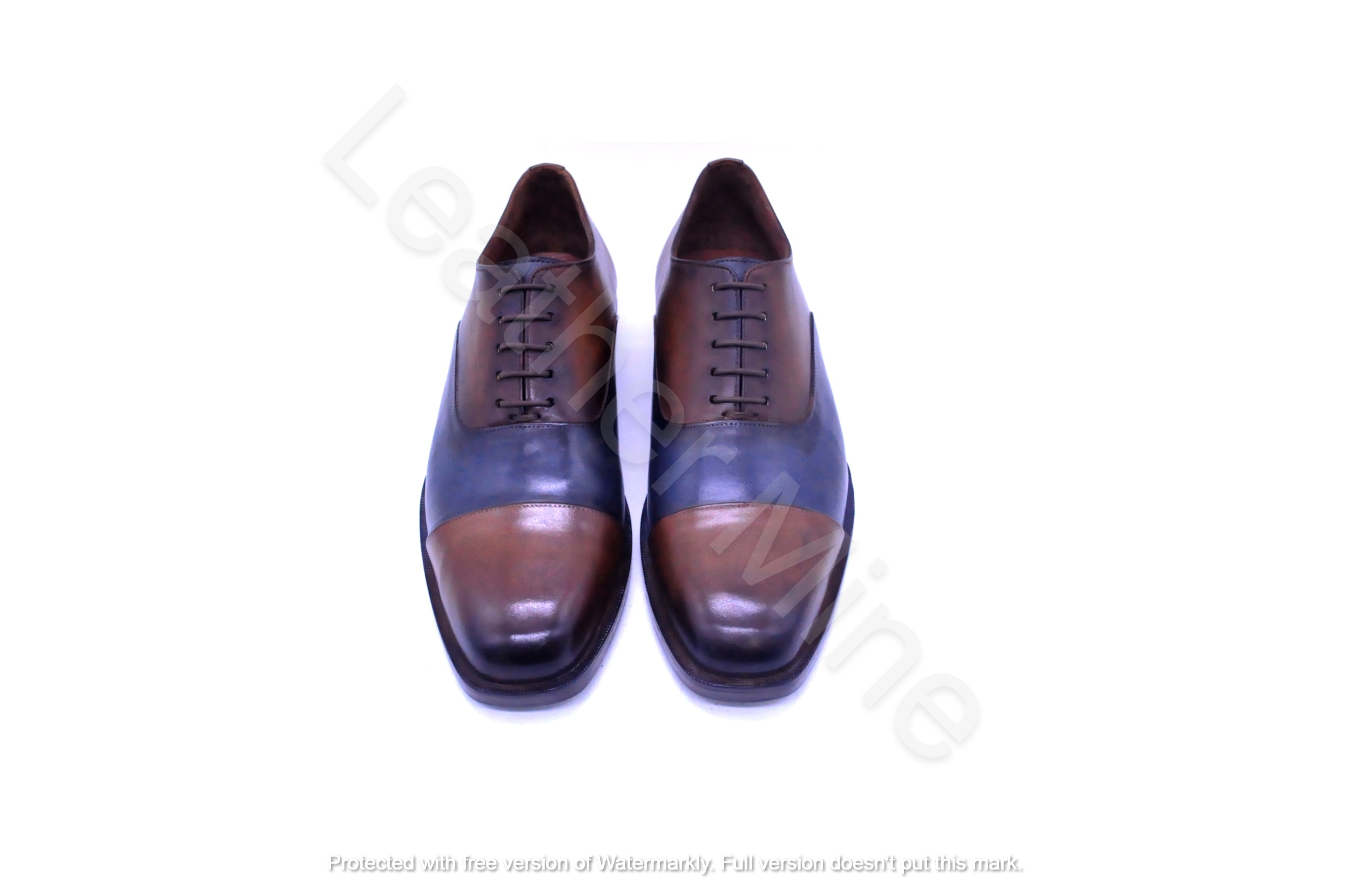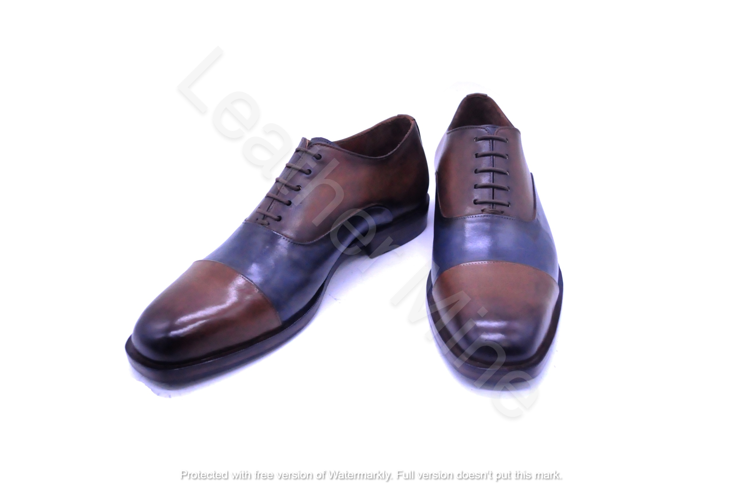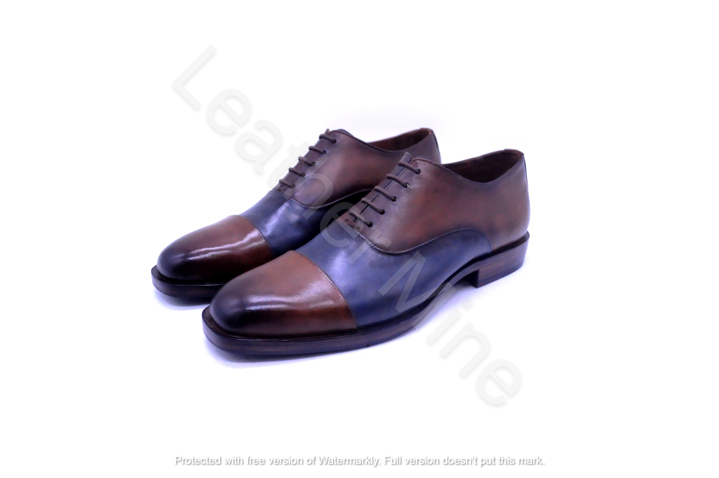 Handmade Men's Two Tone Leather Oxfords Dress Cap Toe Shoes For Men
