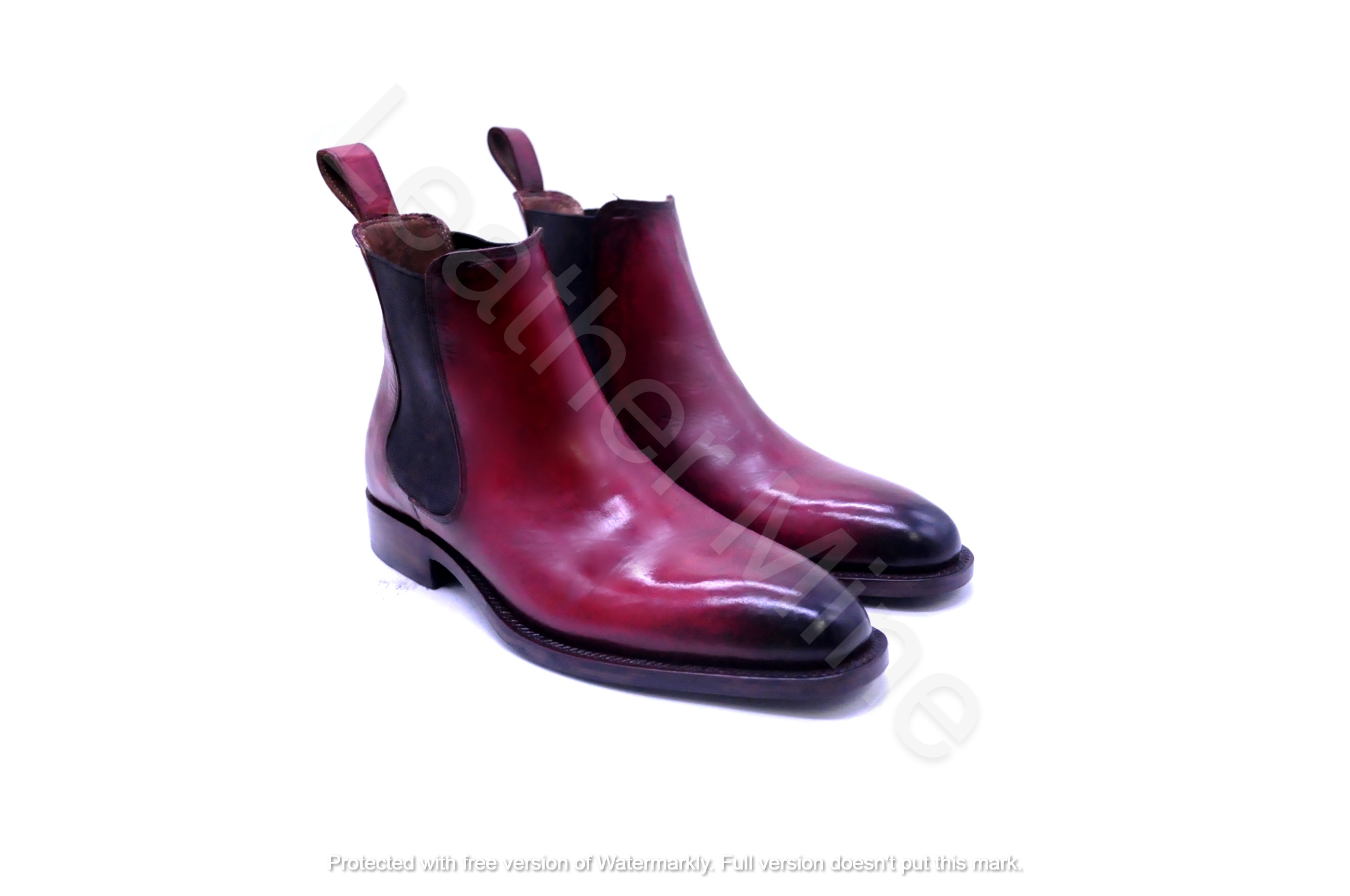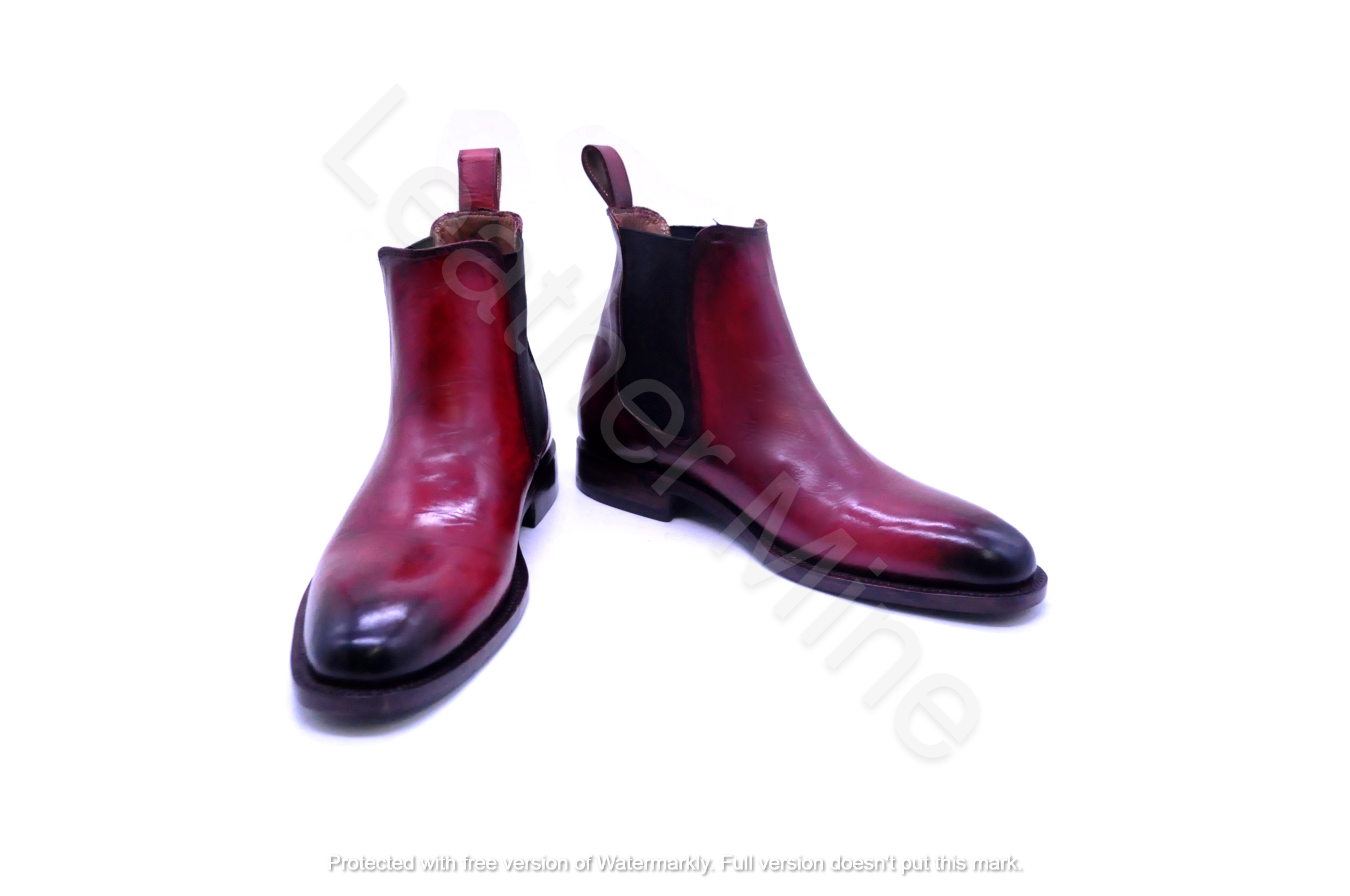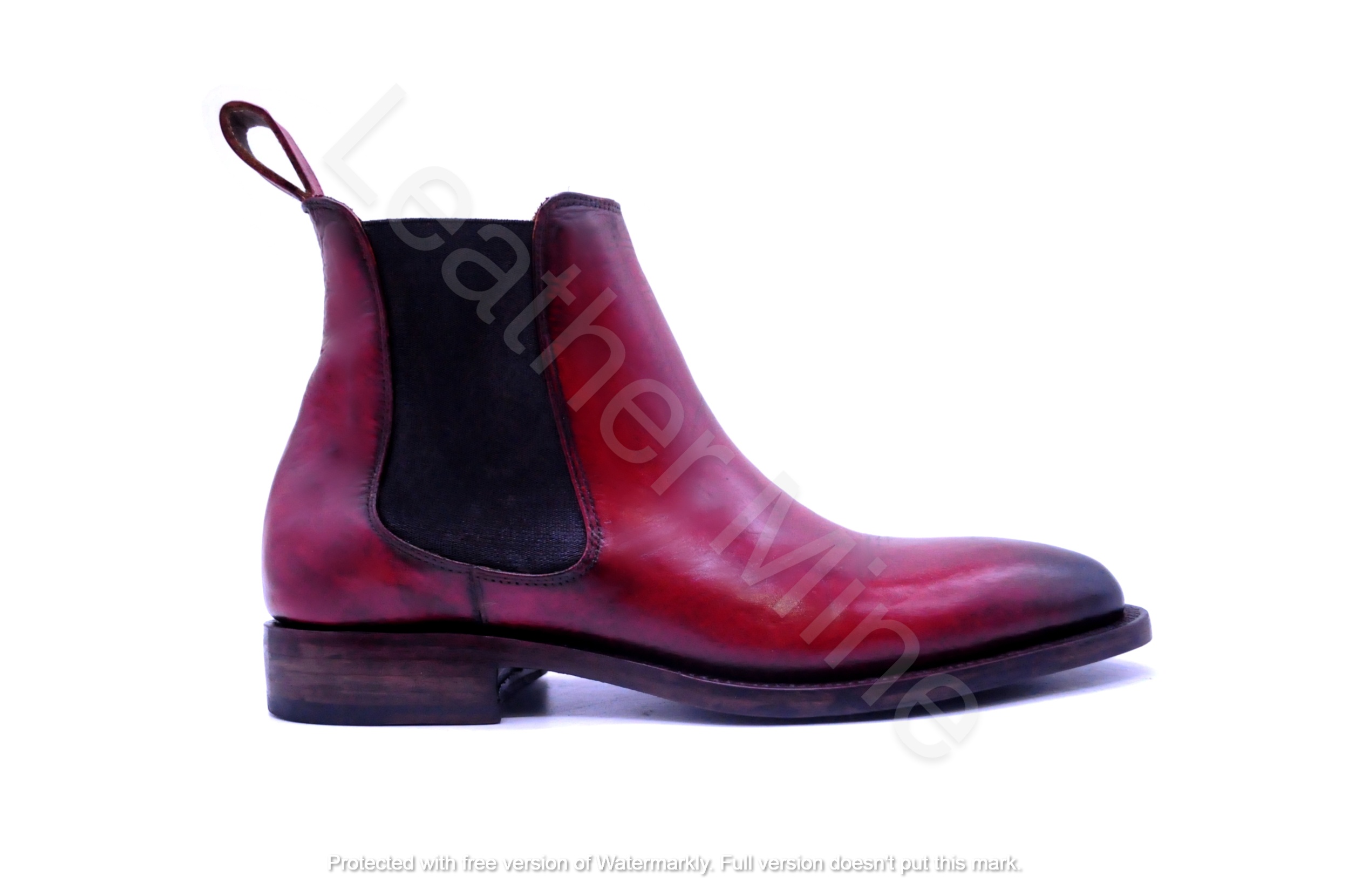 Handmade Men Ankle High Red Patina Leather Chelsea Dress Custom Made Boots
