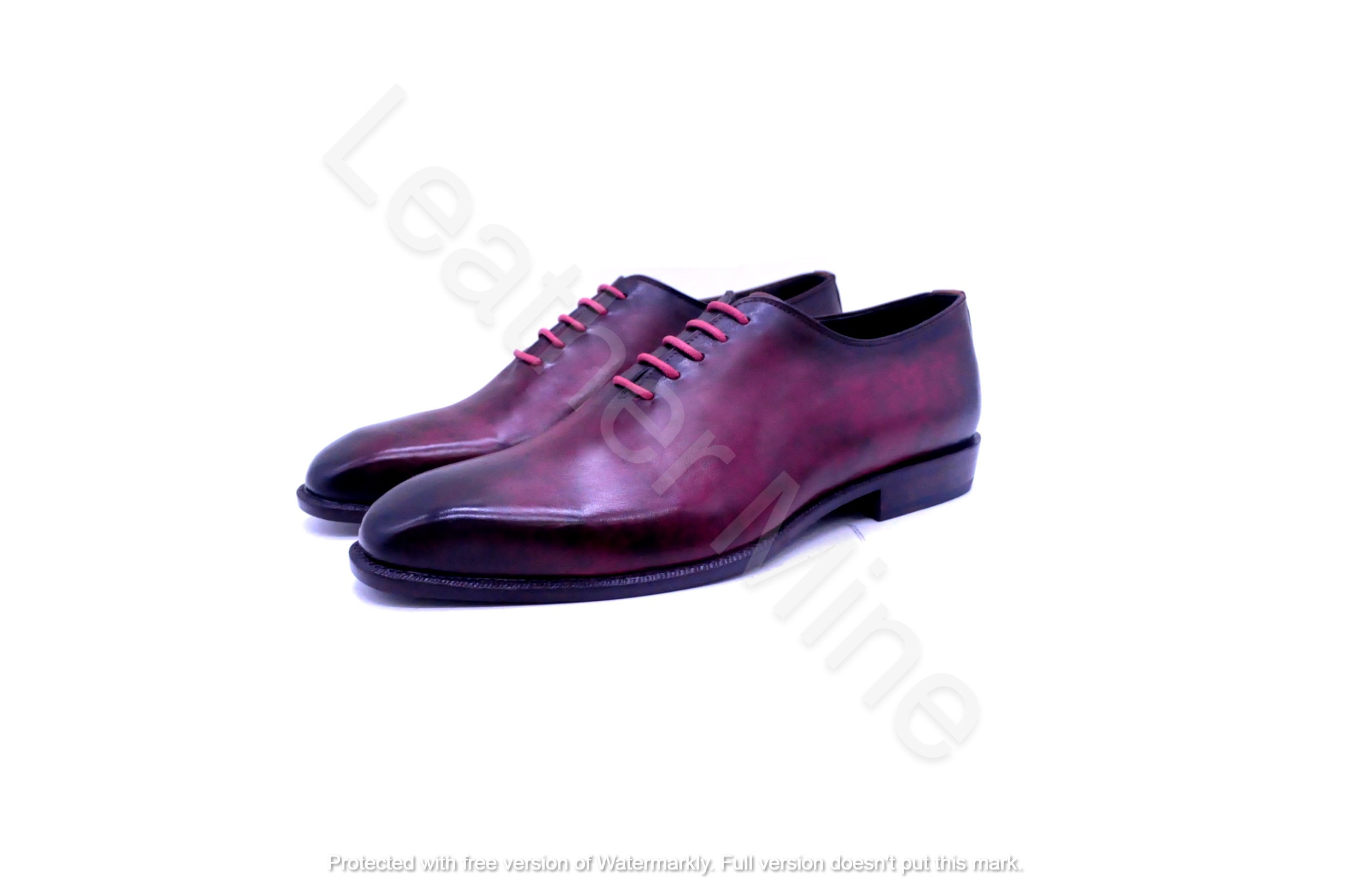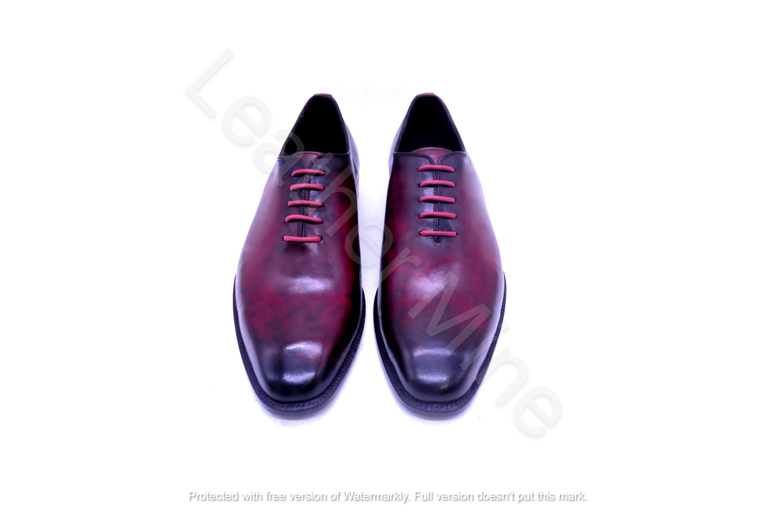 Handmade Men's Maroon Patina Leather Oxfords Dress Shoes For Men