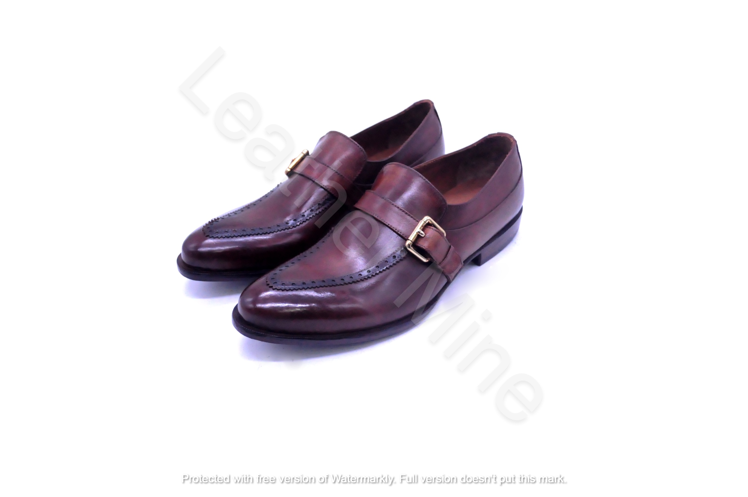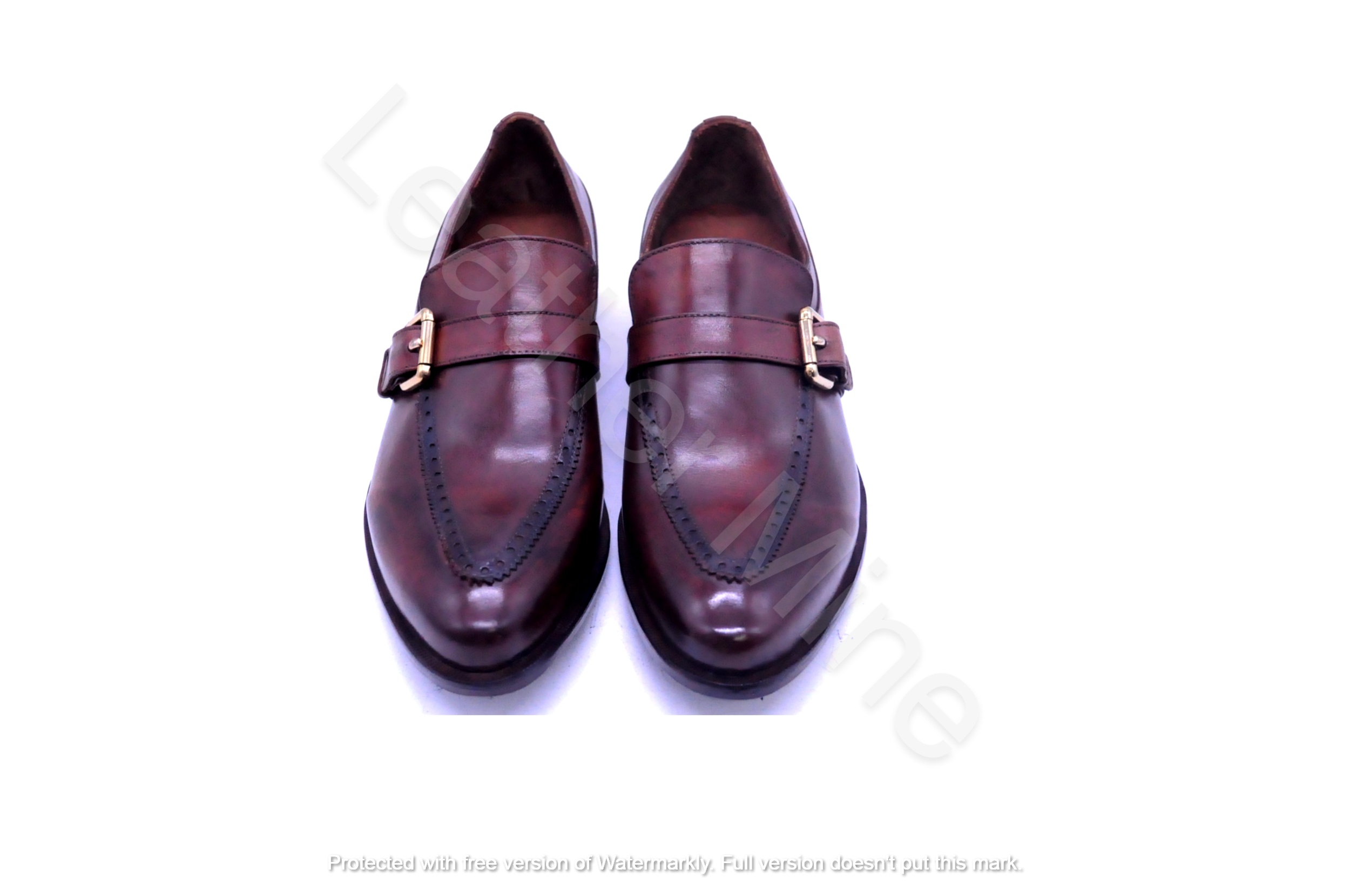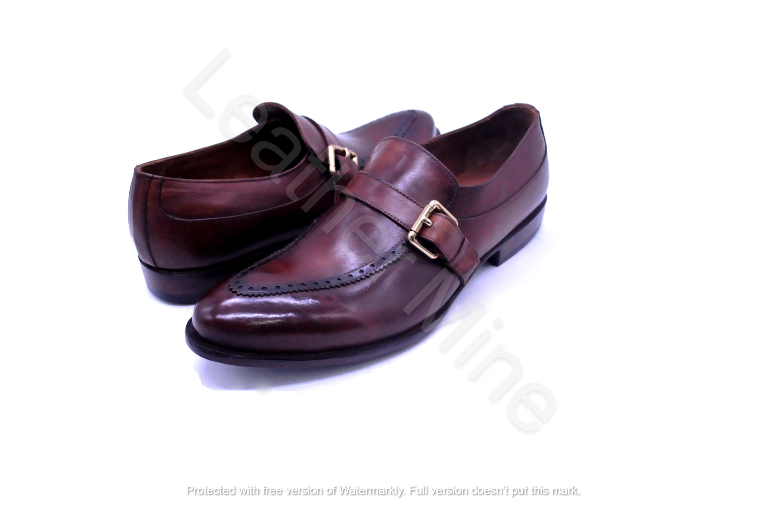 Handmade Men's Brown Leather Monk Strap Dress Formal Shoes For Men