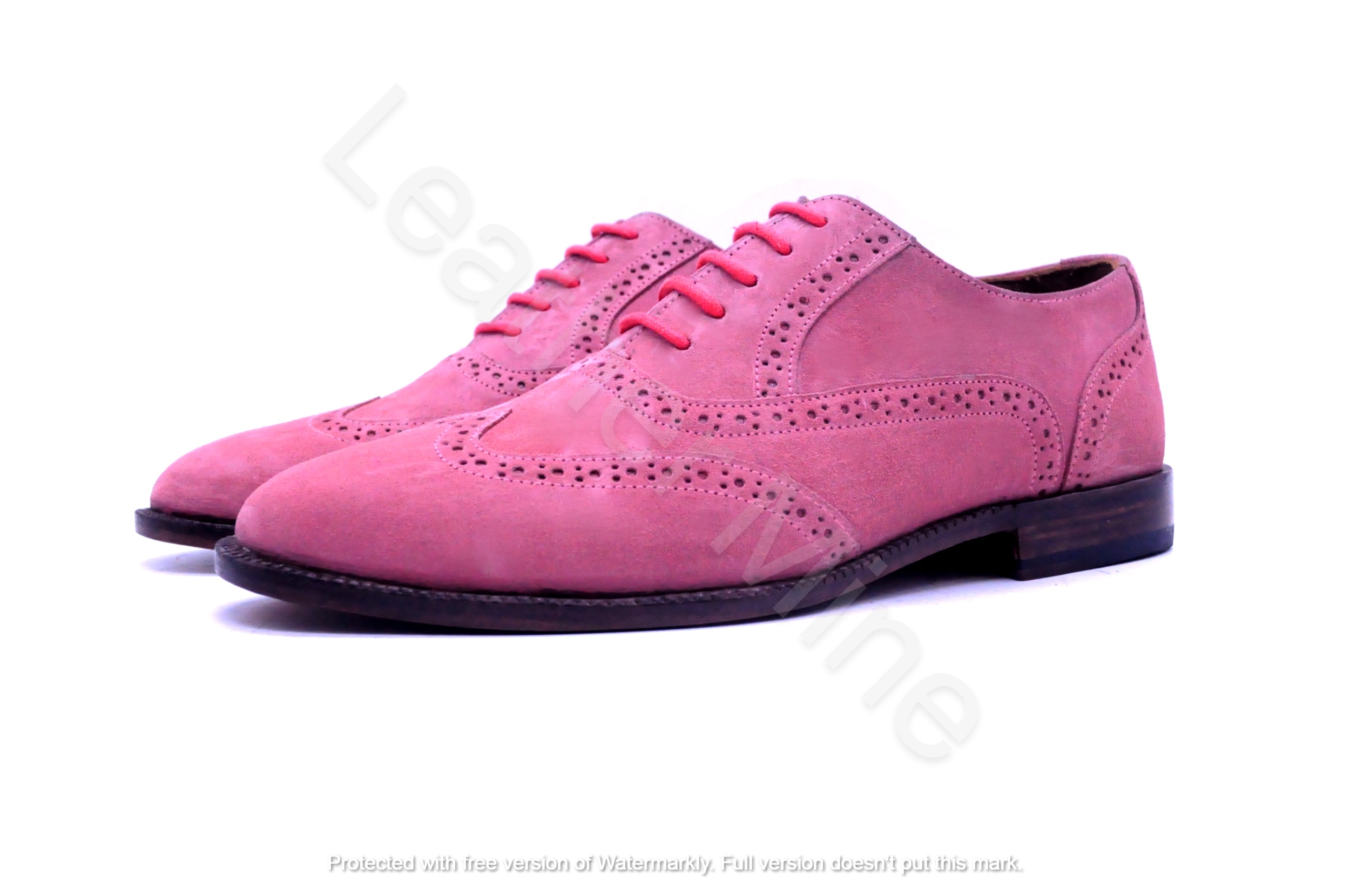 Men's Handmade Pink Suede Leather Wingtip Brogue Leather Dress Shoes For Men