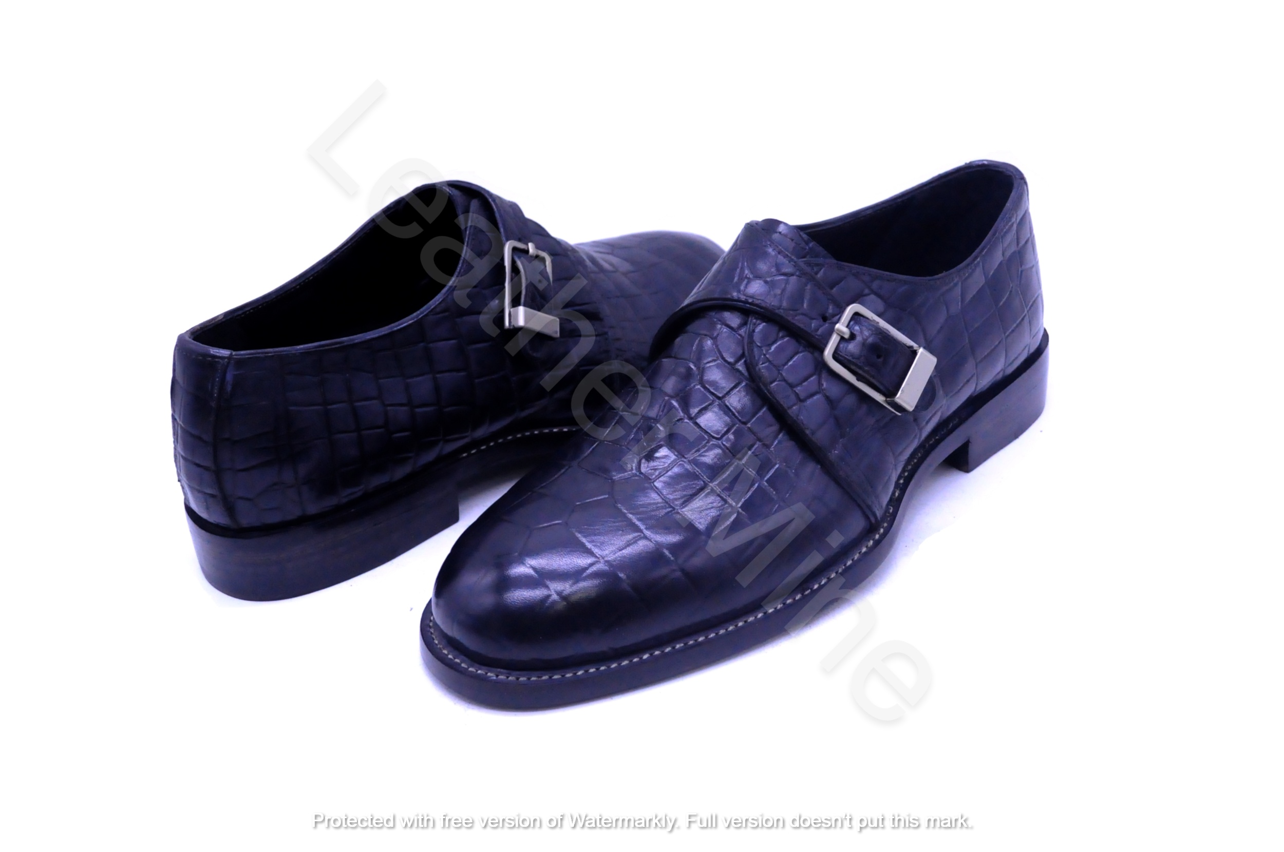 Men's Handmade Black Leather Monk Strap Dress Shoes, Formal Shoes For Men