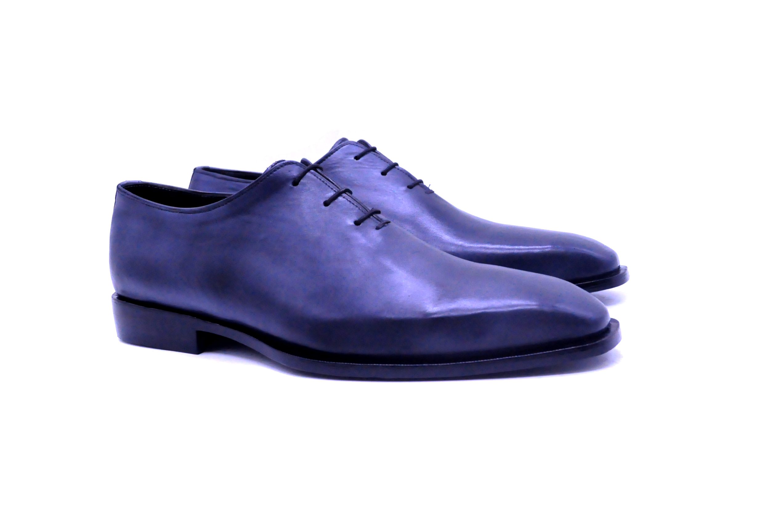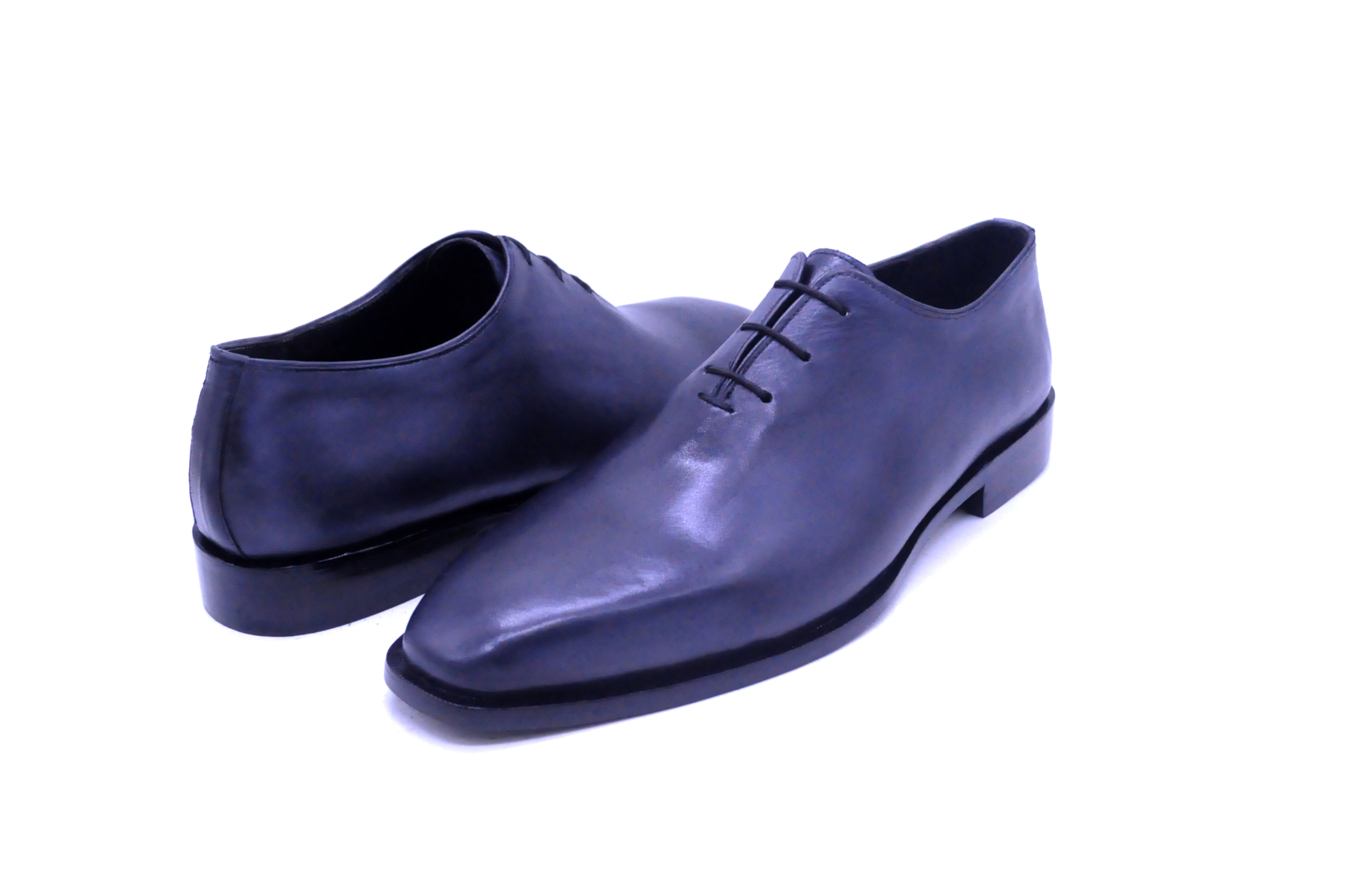 Handmade Men's Gray Patina Leather Whole Cut Oxford Dress Shoes For Men