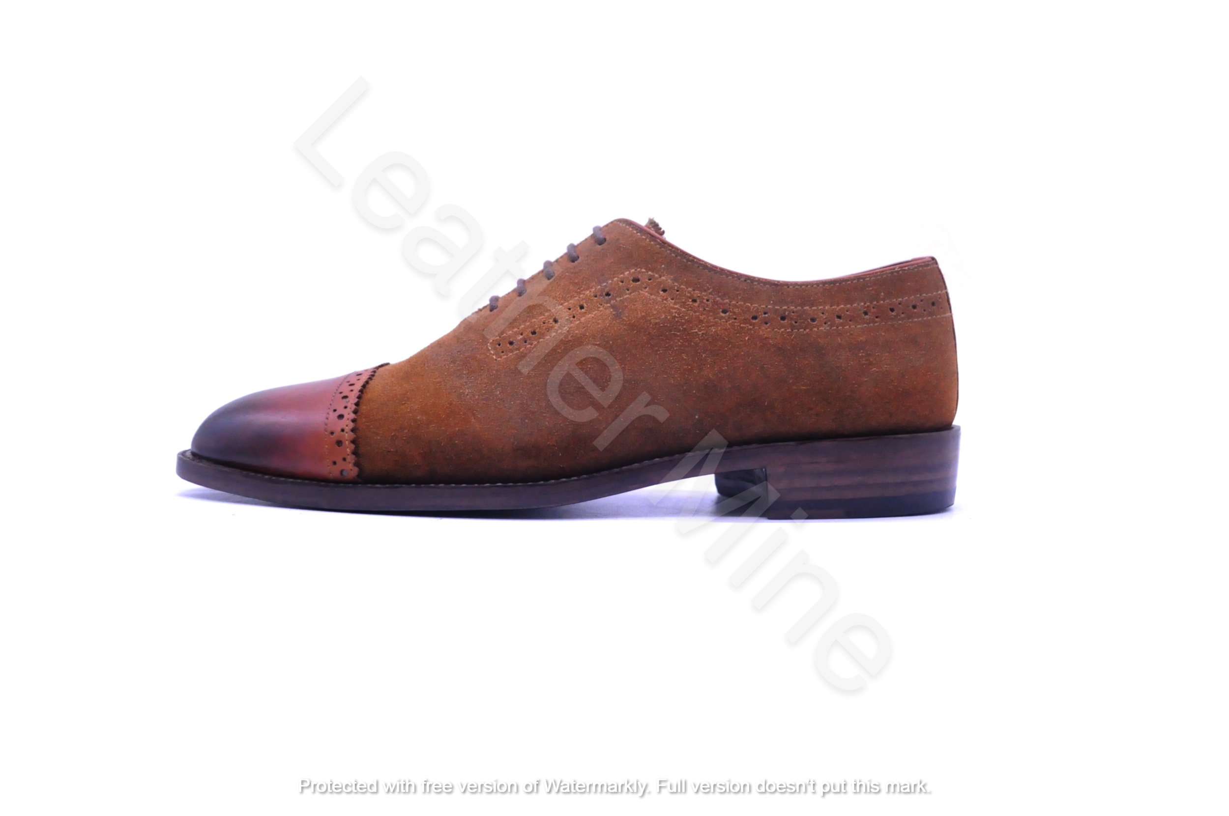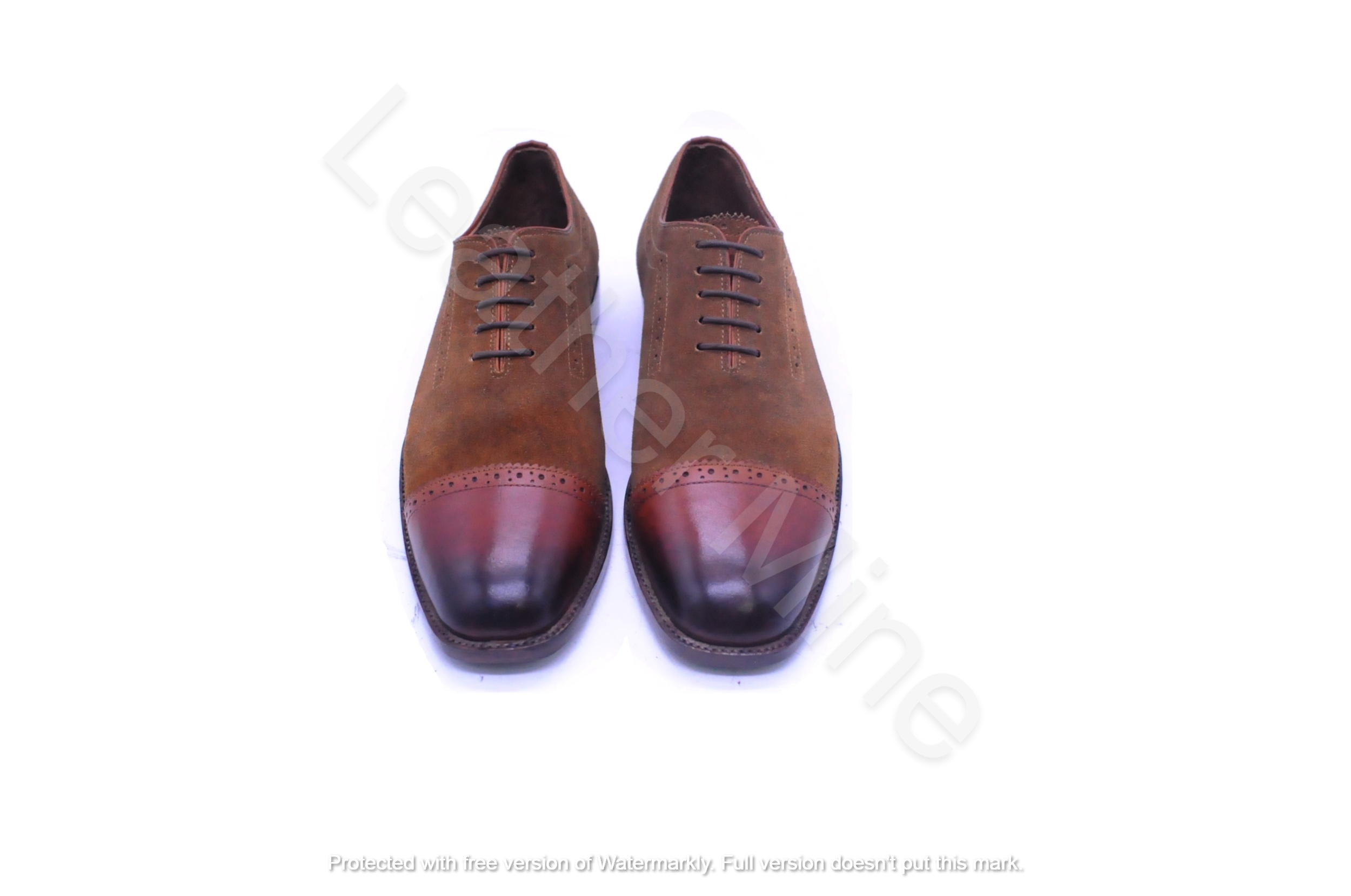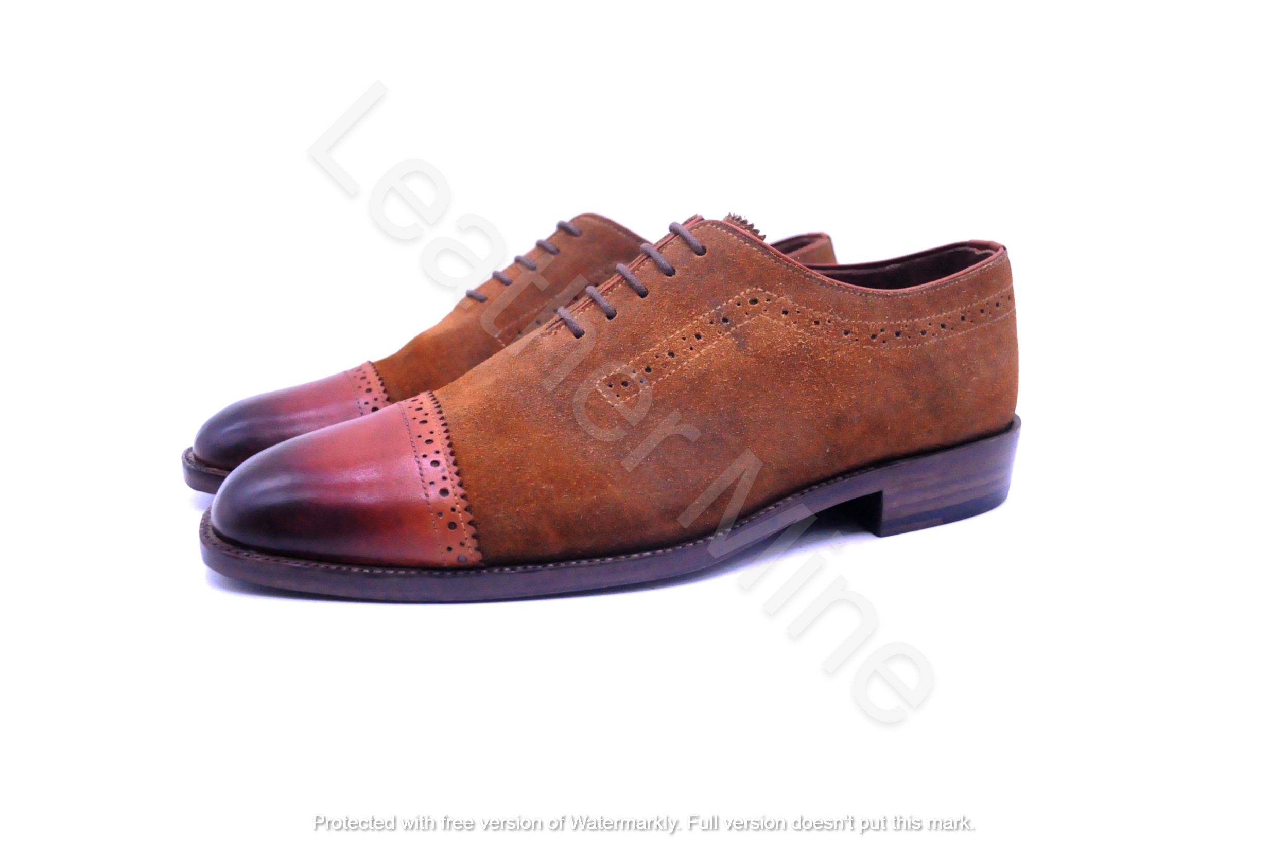Men's Handmade Two Tone Brown Leather Dress Shoes For Men, Cap Toe Shoes Men