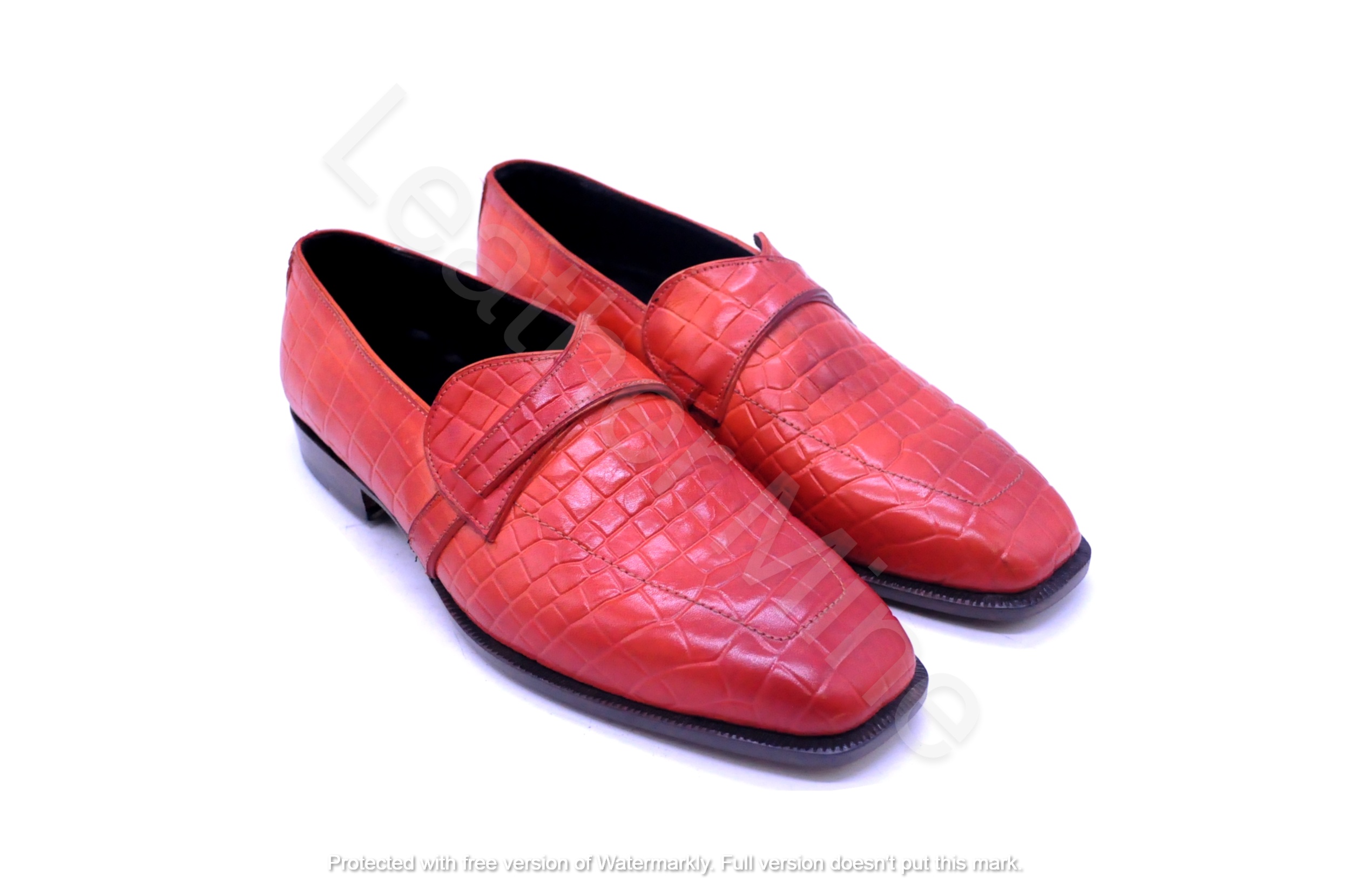 Men's Handmade Patina Crocodile Leather Dress Loafers Formal Shoes For Men