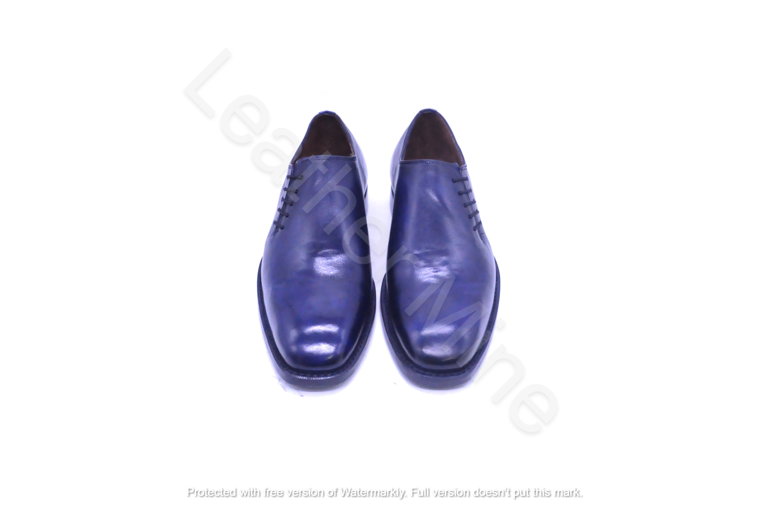 Handmade Men's Blue Patina Leather Whole Cut Oxford Dress Shoes For Men
