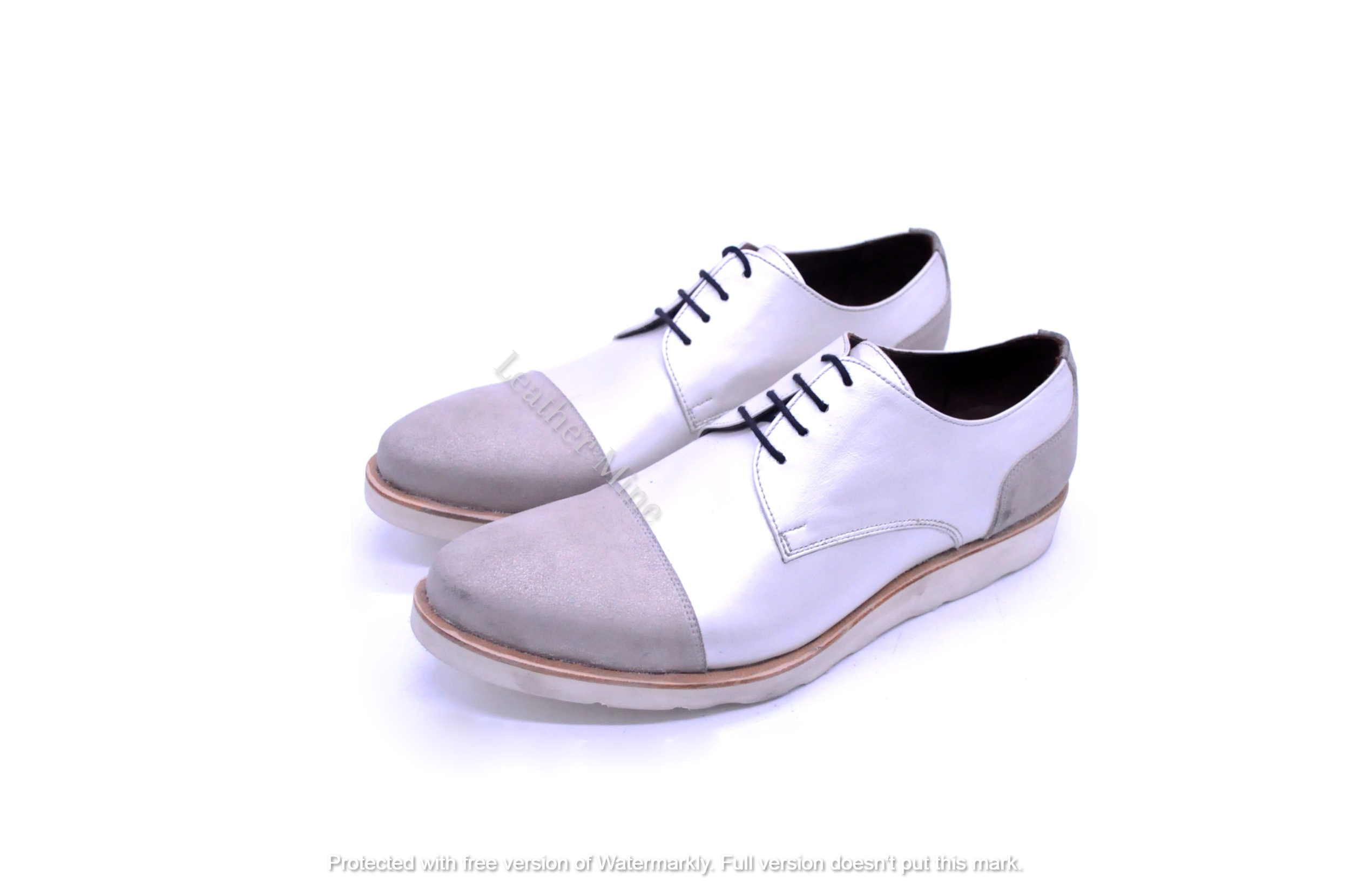 Handmade Men's White Pearl Leather Derby Dress Toe Cap Shoes For Men