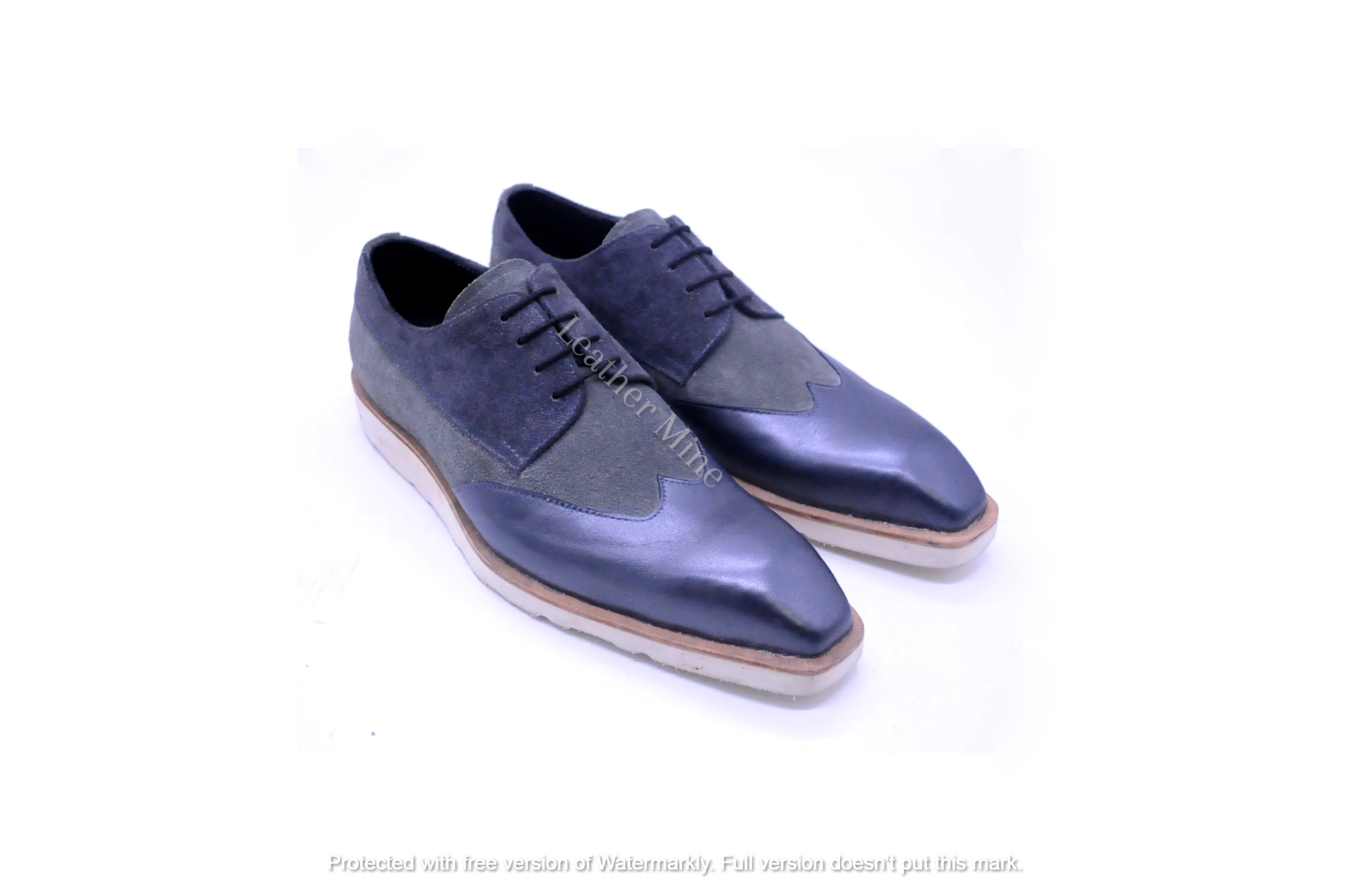 Handmade Men's Gray Leather Derby Dress Shoes For Men, Custom Made Formal Shoes