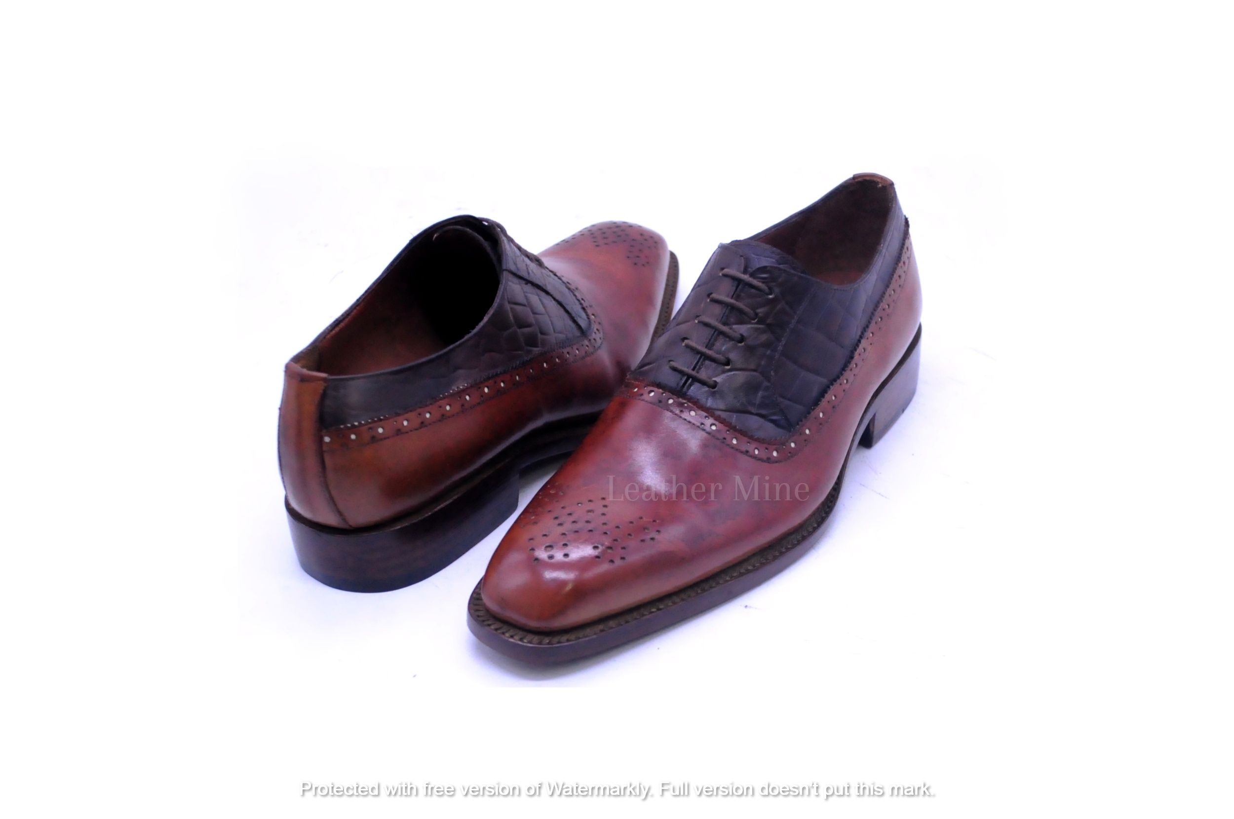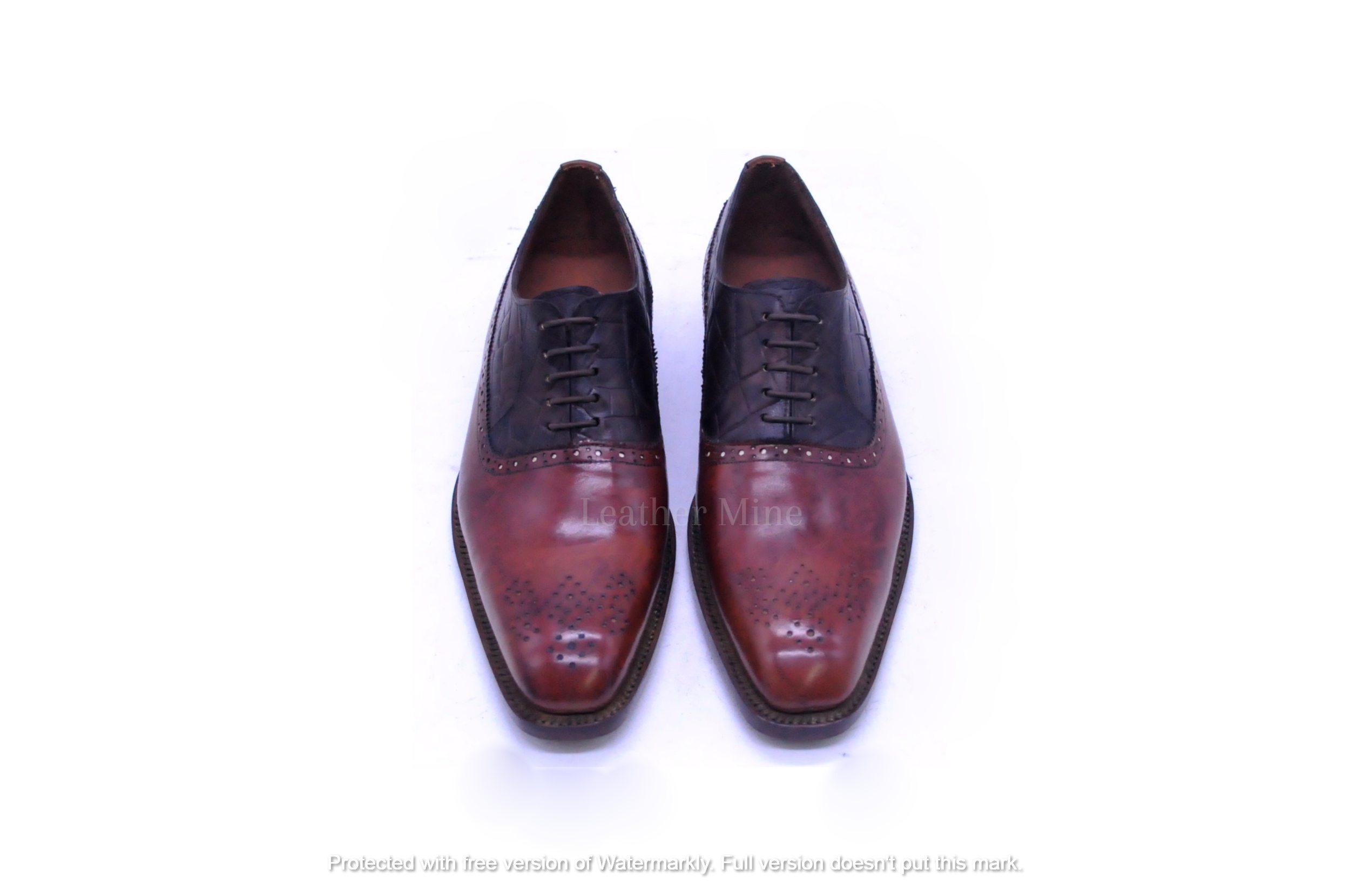 Men's Handmade Tan Patina Oxfords Leather Dress Formal Shoes For Men