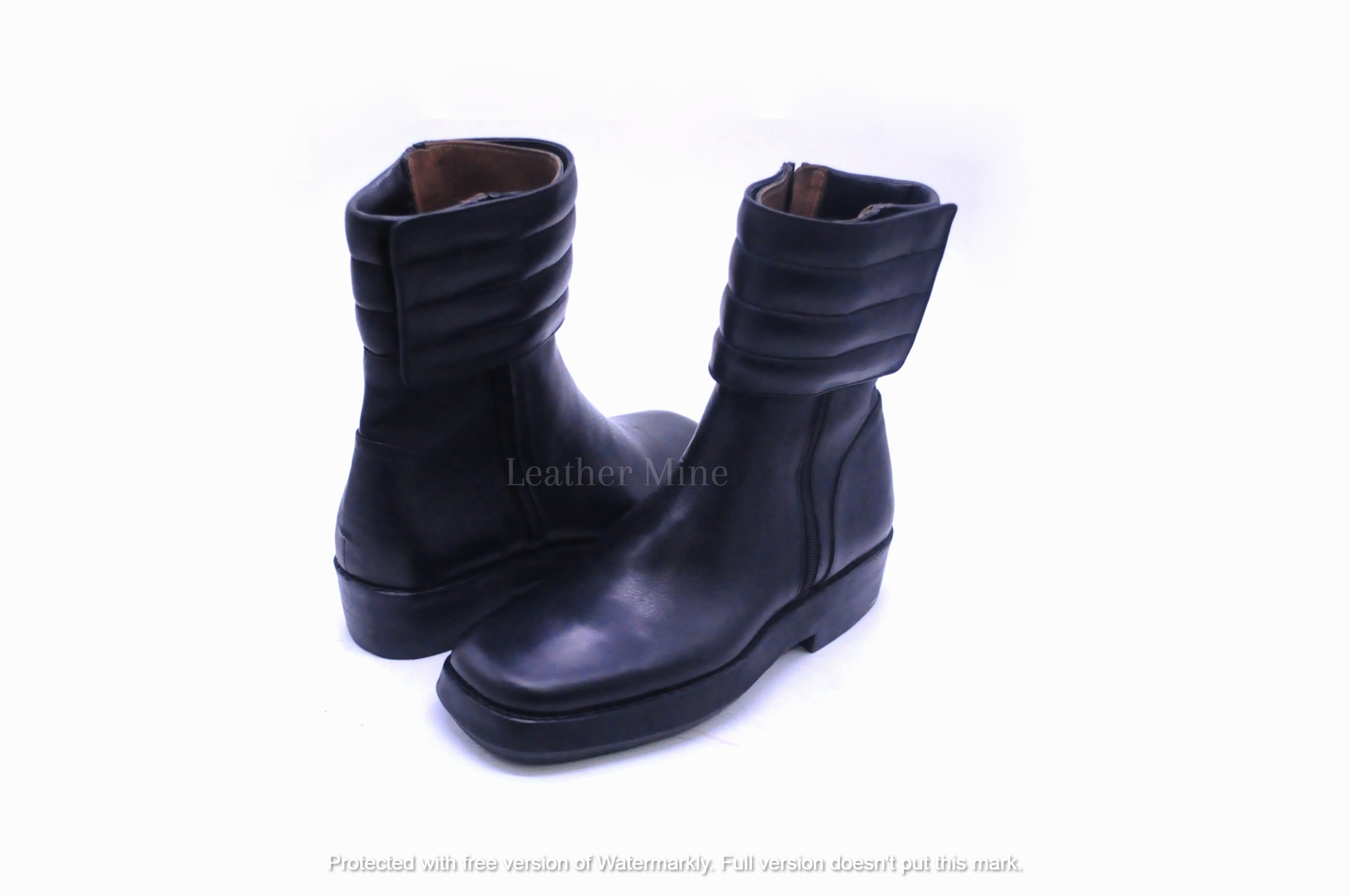Handmade Black Leather Ankle High Boots For Men, Genuine Leather Boots