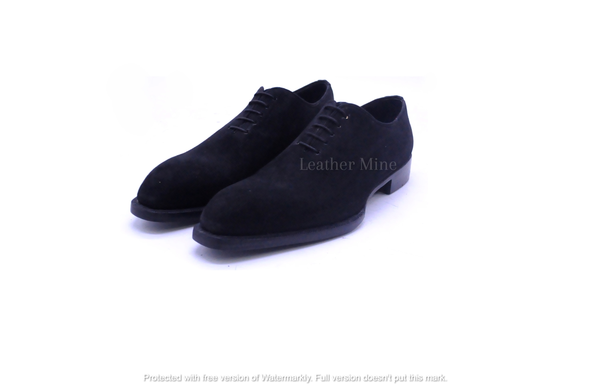 Men's Handmade Black Suede Whole Cut Leather Oxfords Dress Shoes For Men