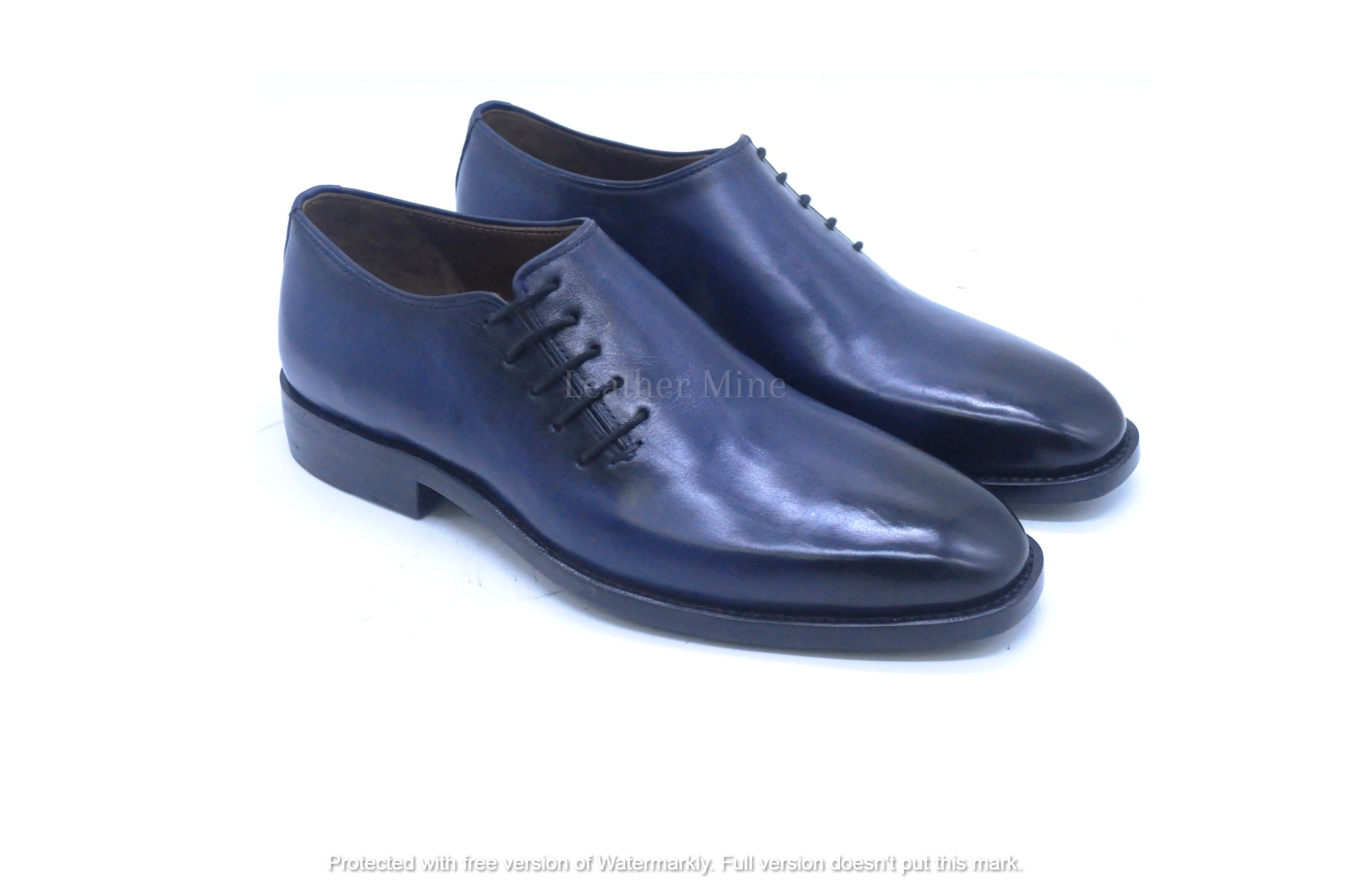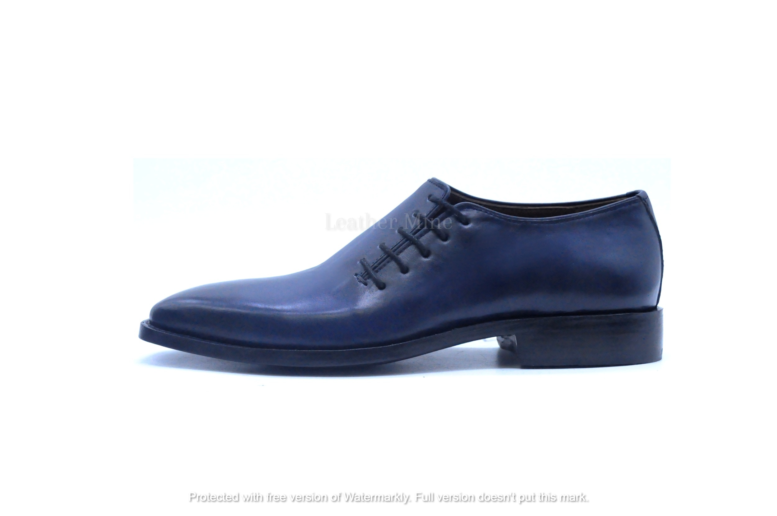 Men's Handmade Leather Shoes Blue Patina Whole Cut Oxfords Dress Shoes