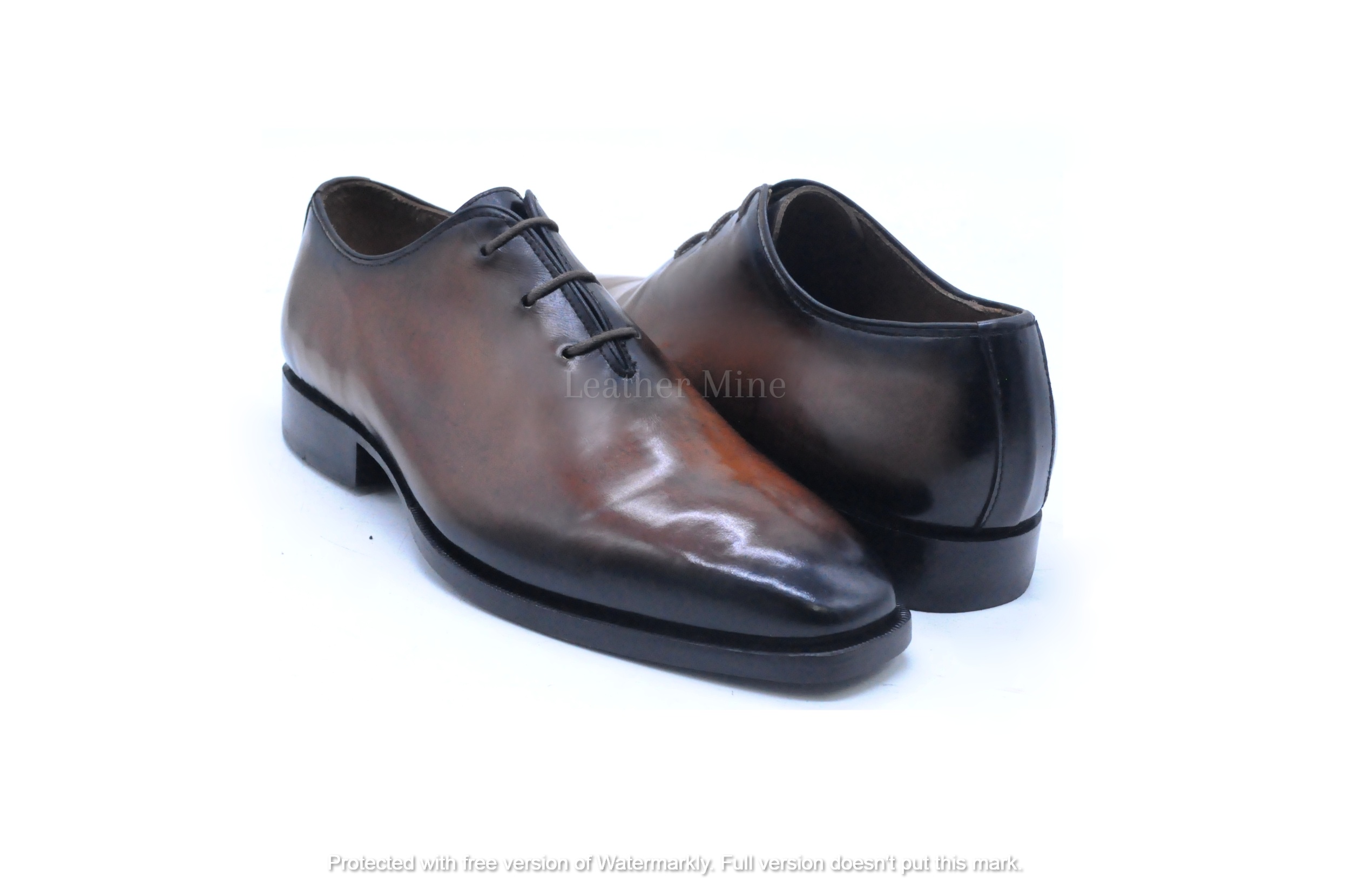 Men's Handmade Brown Patina Whole Cut Oxford Leather Dress Shoes For Men