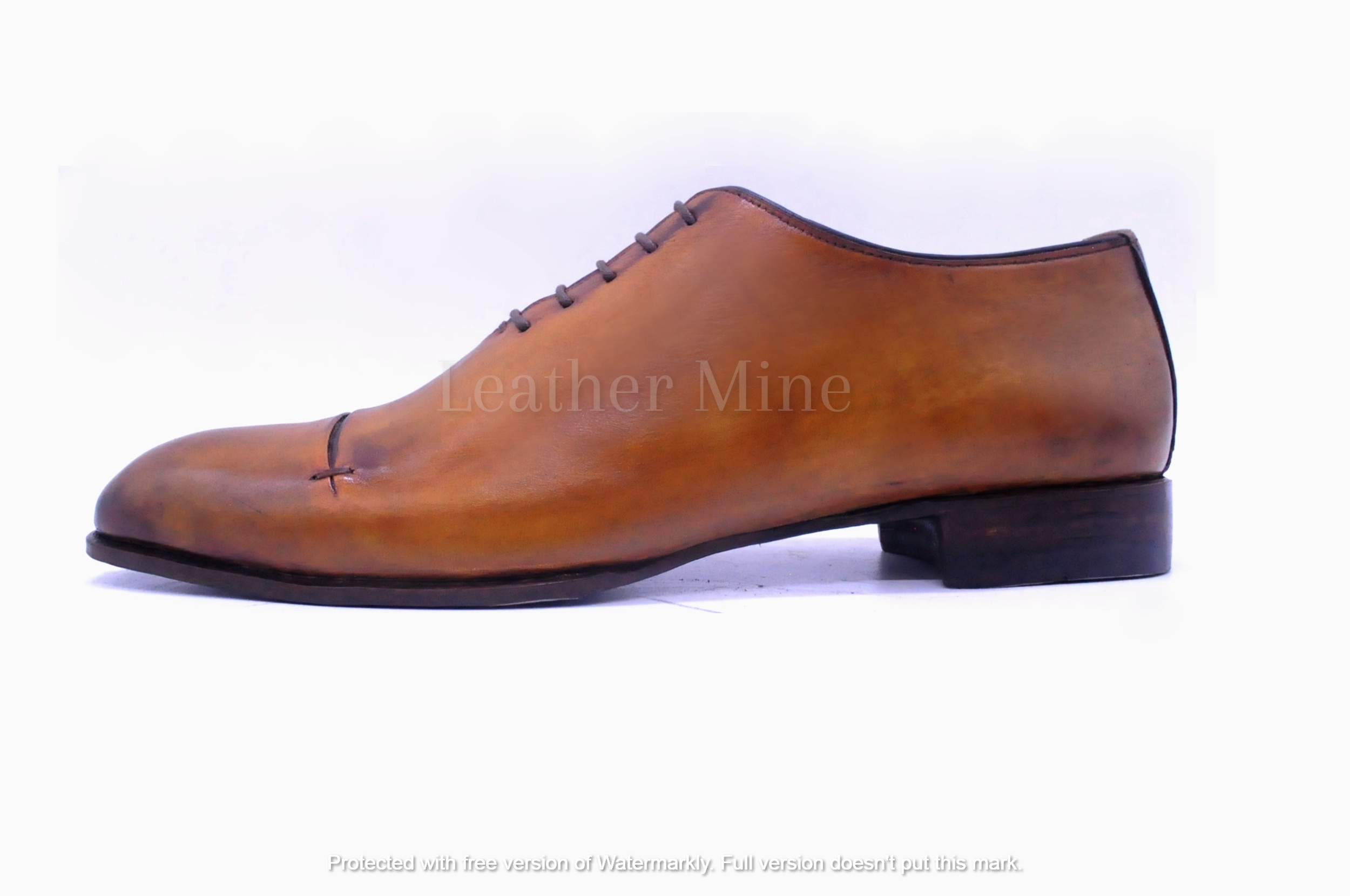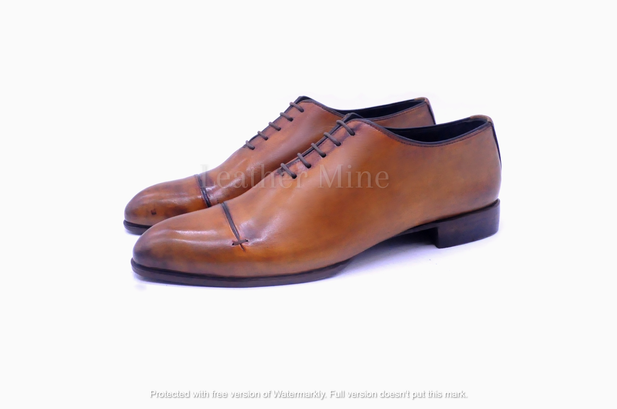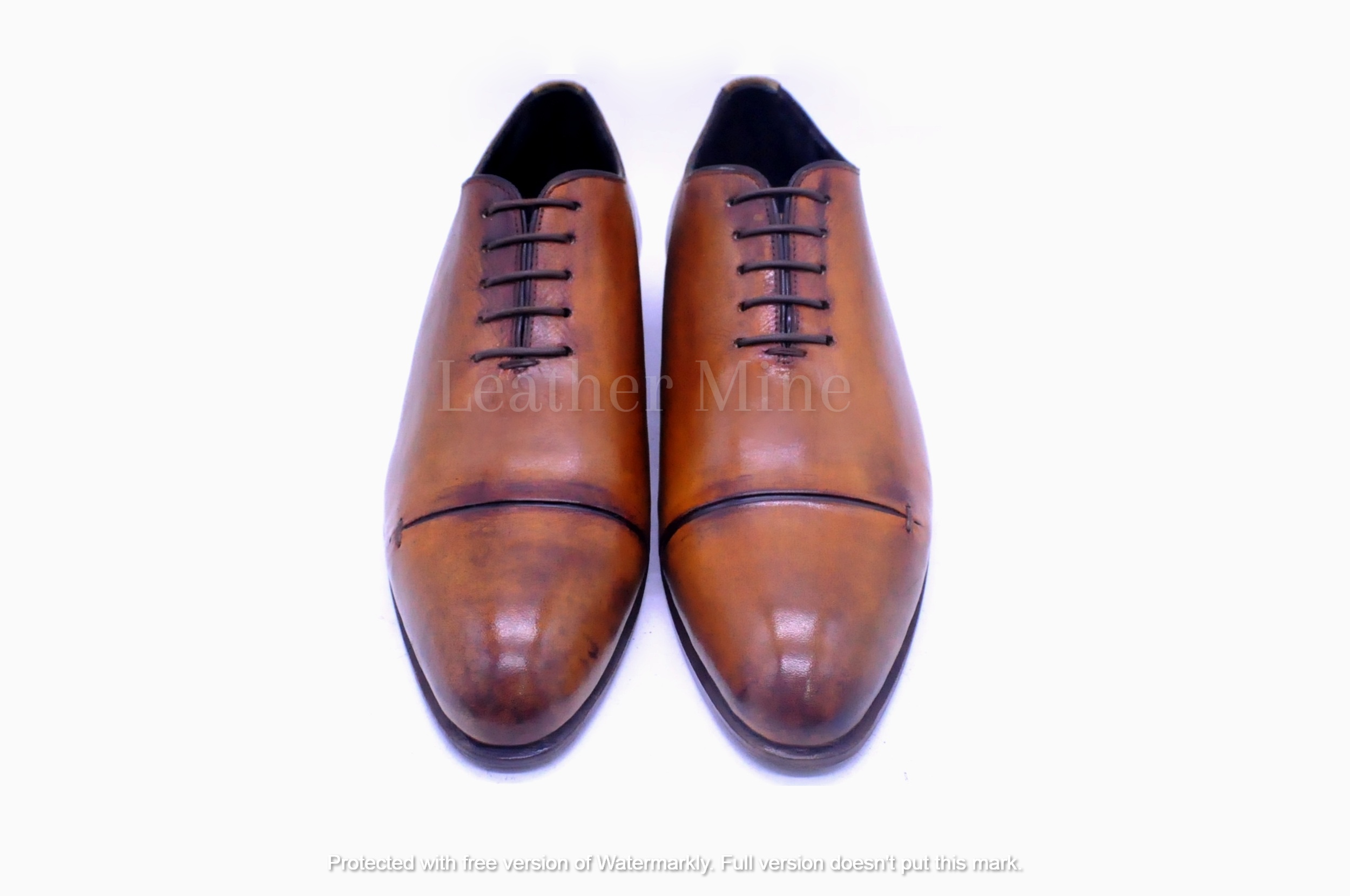 Handmade Men's Tan Patina Leather Oxfords Formal Custom Made Shoes