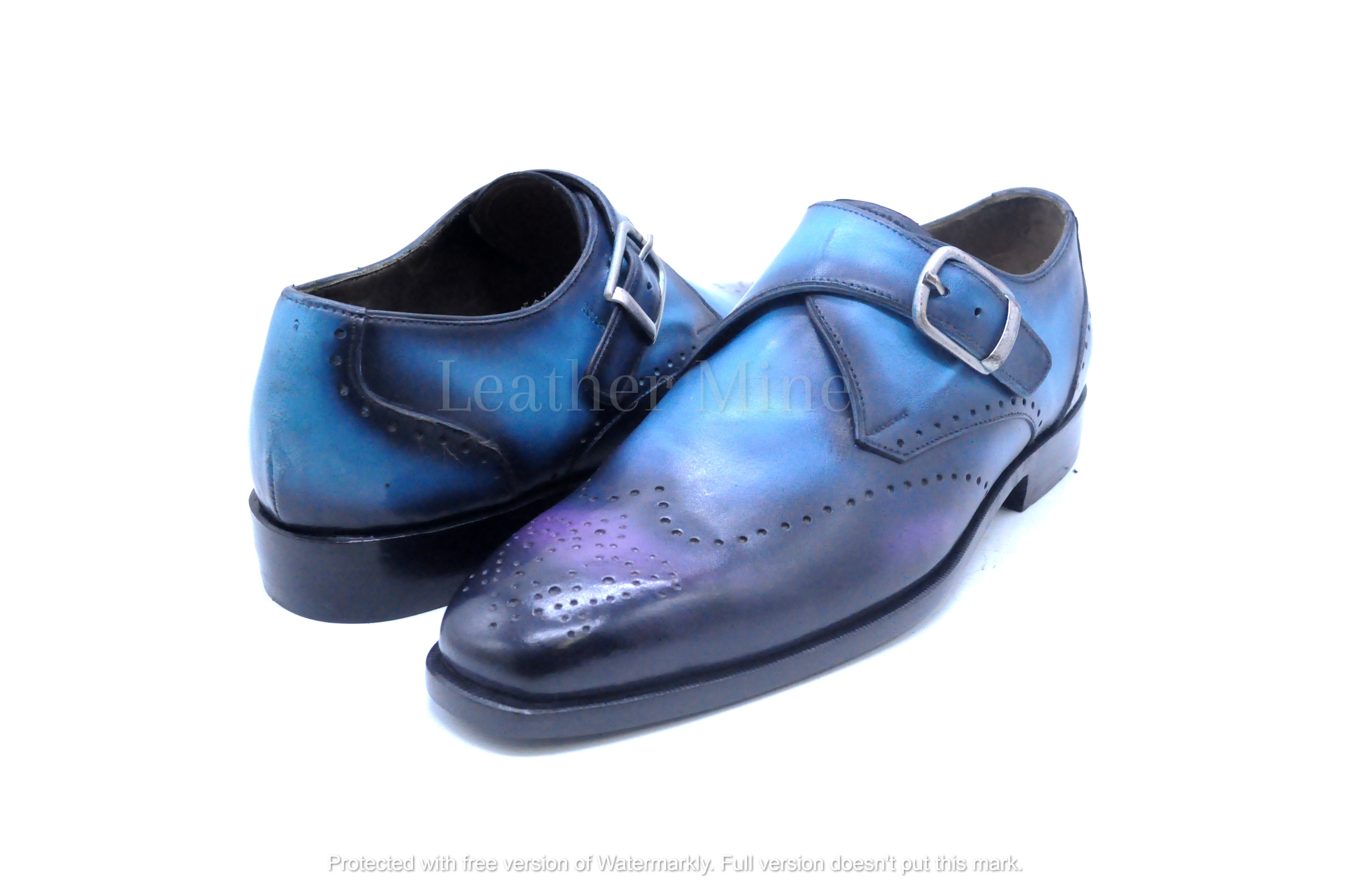 Handmade Men's Blue Patina Monk Strap Leather Dress Custom Made Shoes