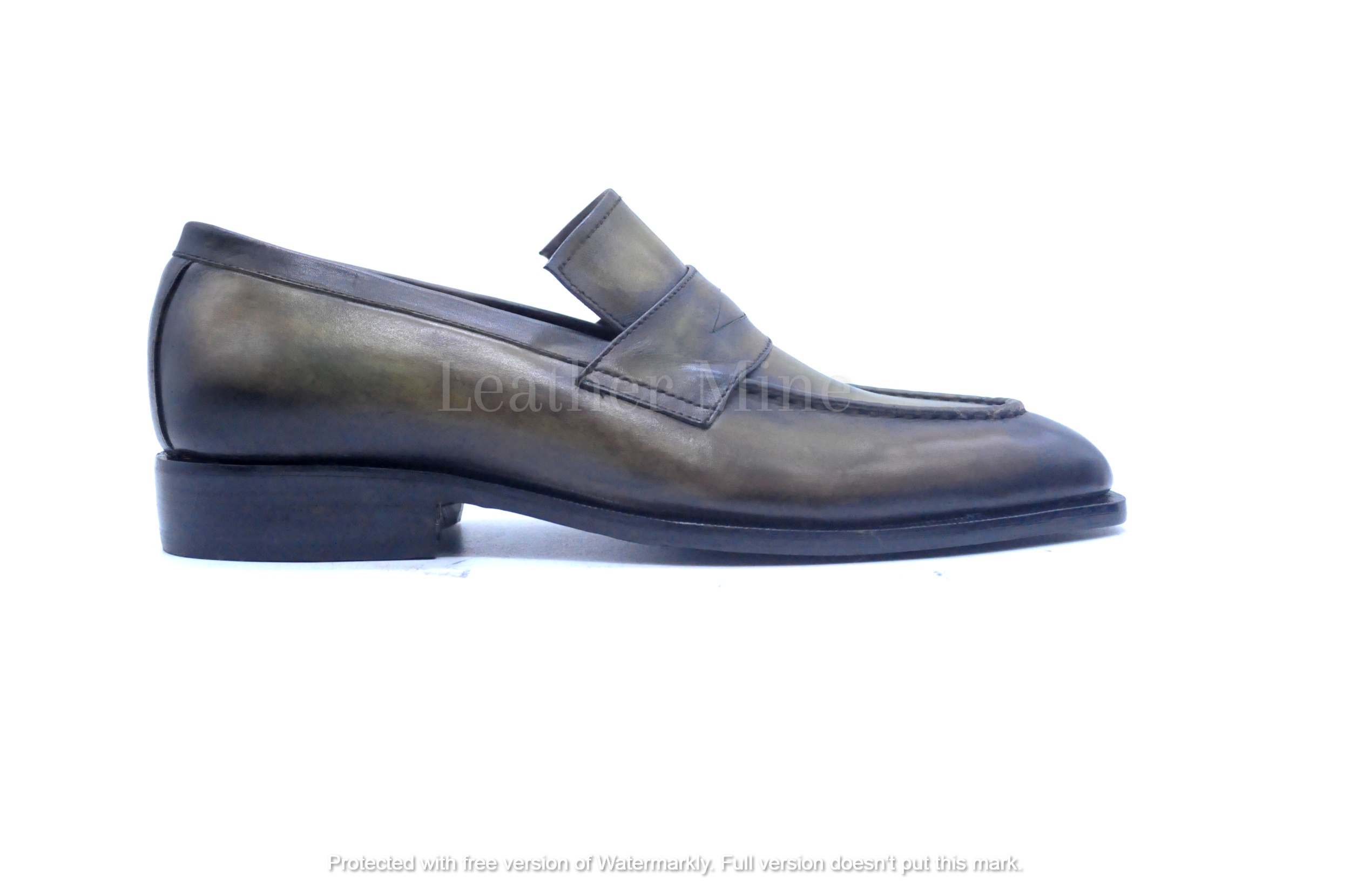 Men's Handmade Antique Green Leather Dress Loafers Shoes For Men