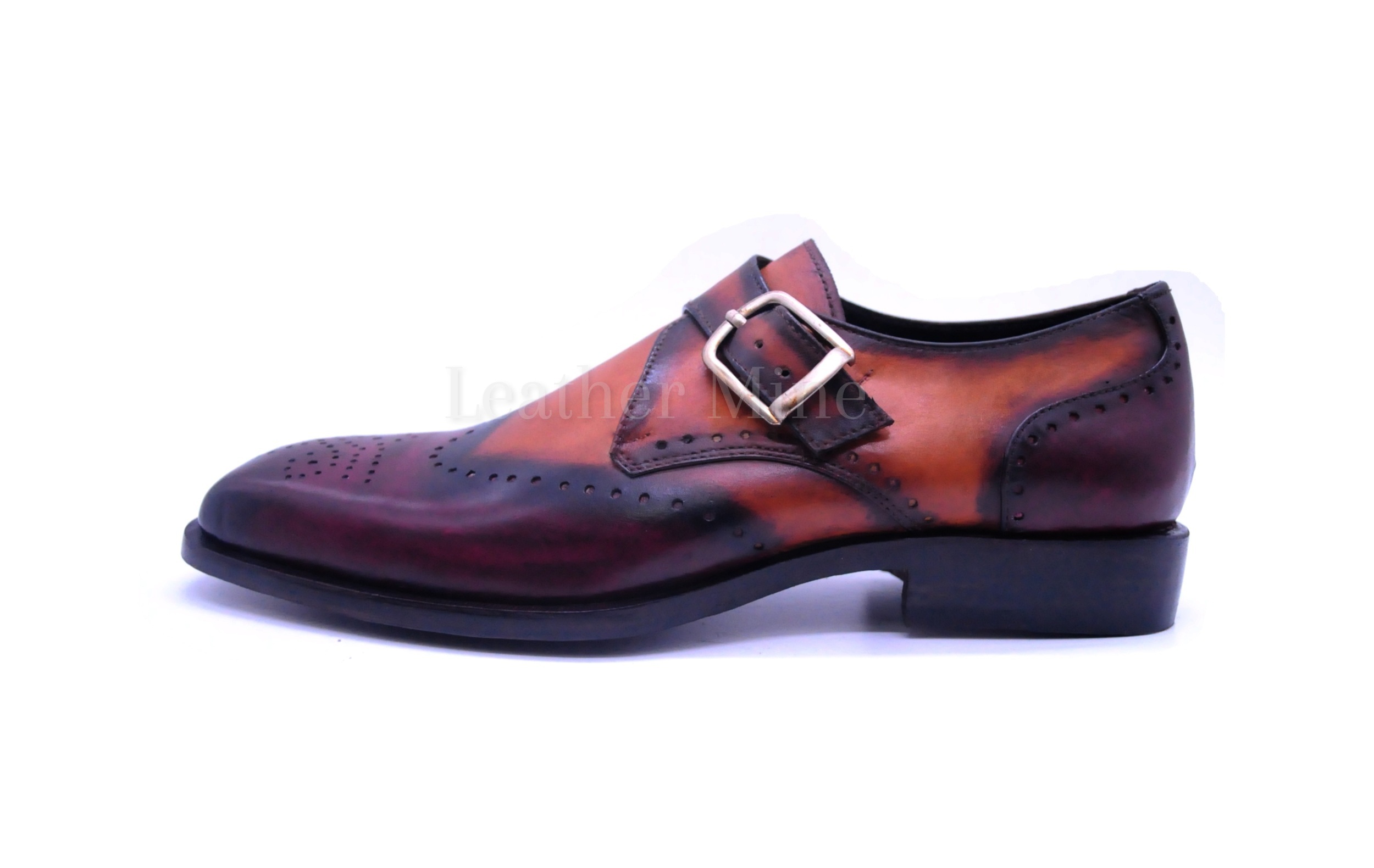 Men's Dress Shoes, Handmade Burgundy Monk strap Leather Shoes