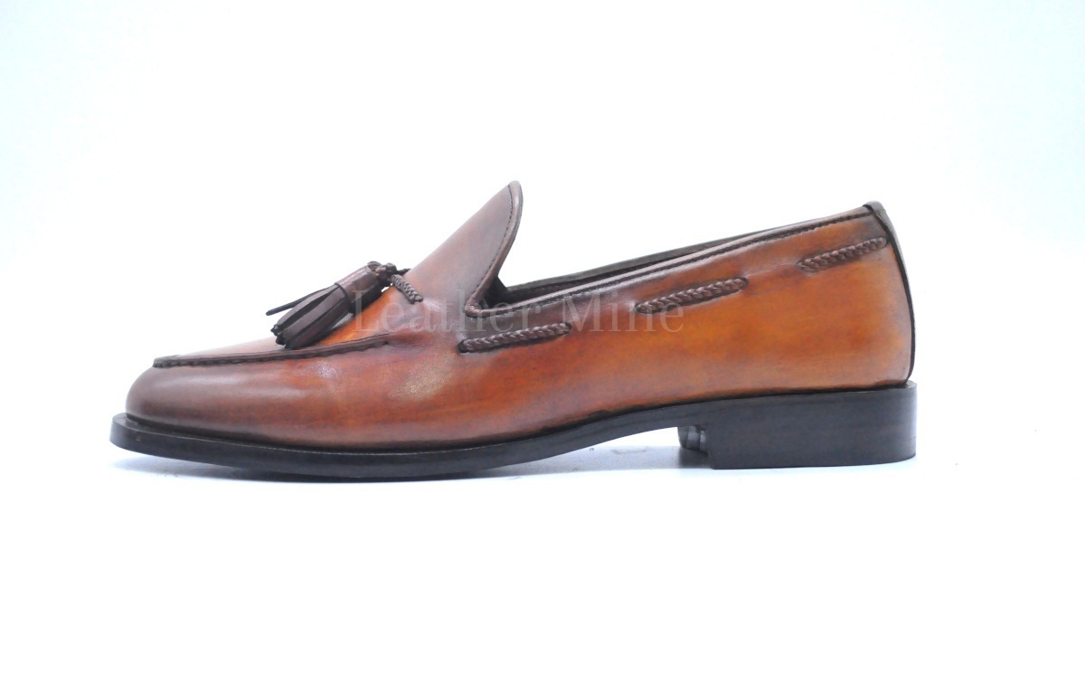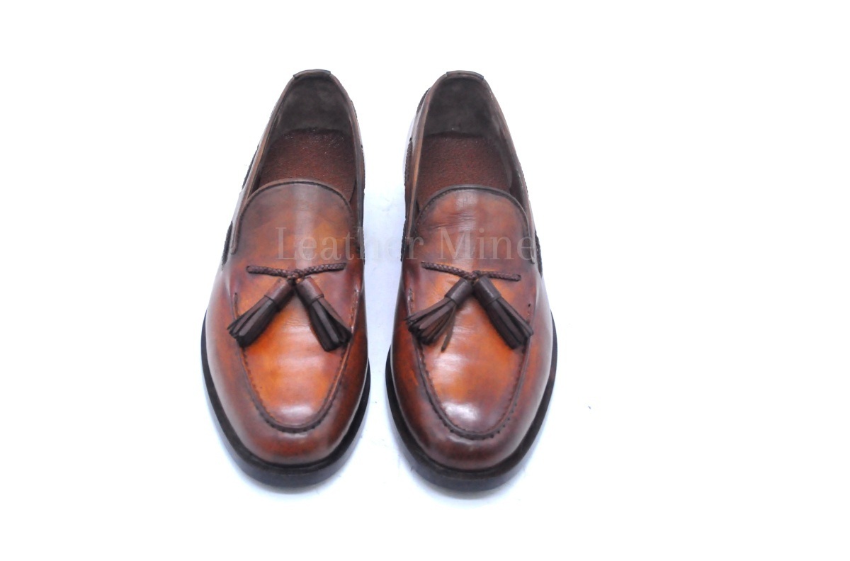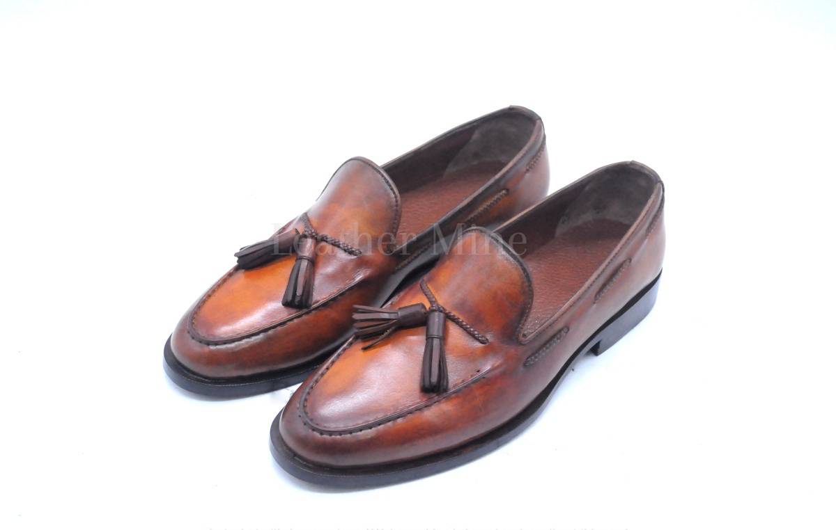 Leather Dress Shoes Mens, Handmade Tan Tassel Loafers Dress Shoes
