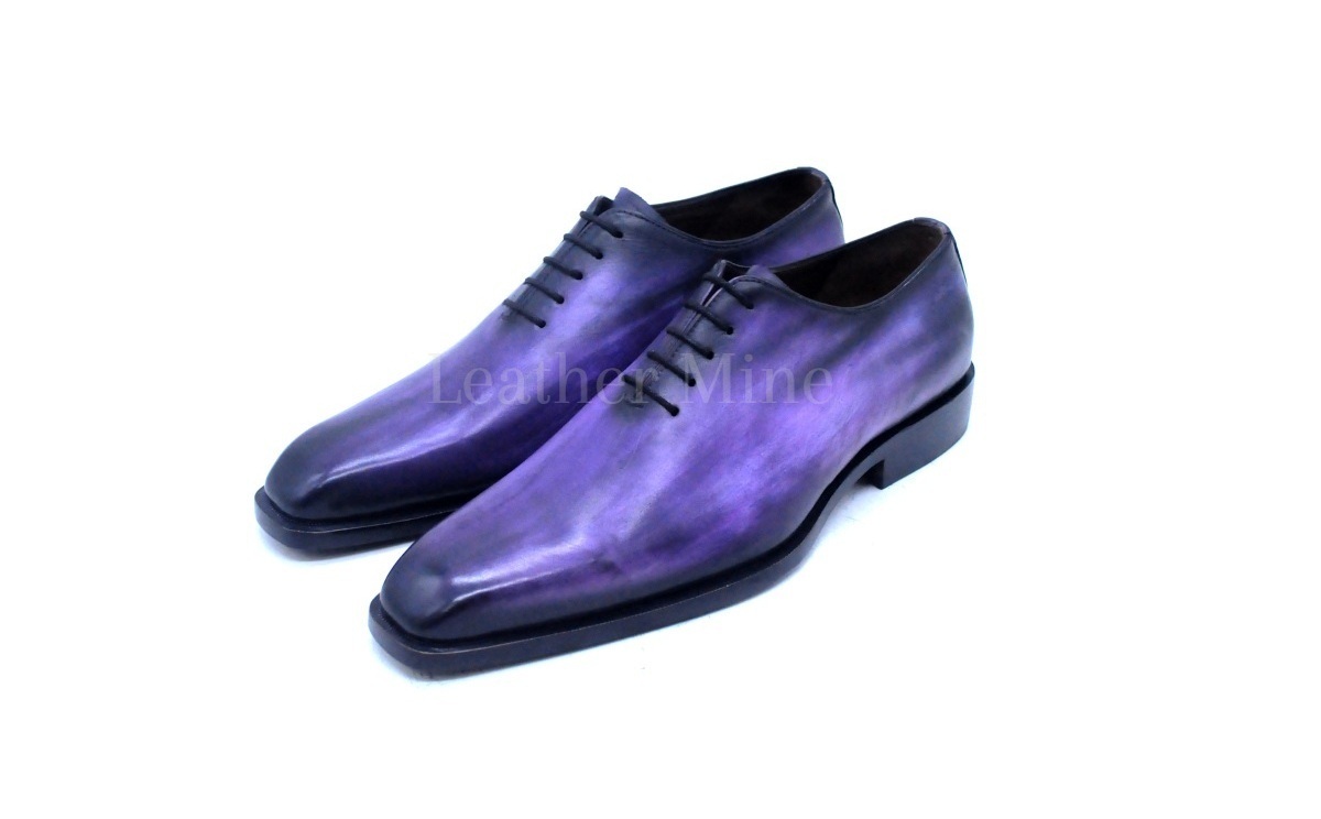 Leather Dress Shoes Mens, Handmade Purple Oxford Genuine Leather Shoes