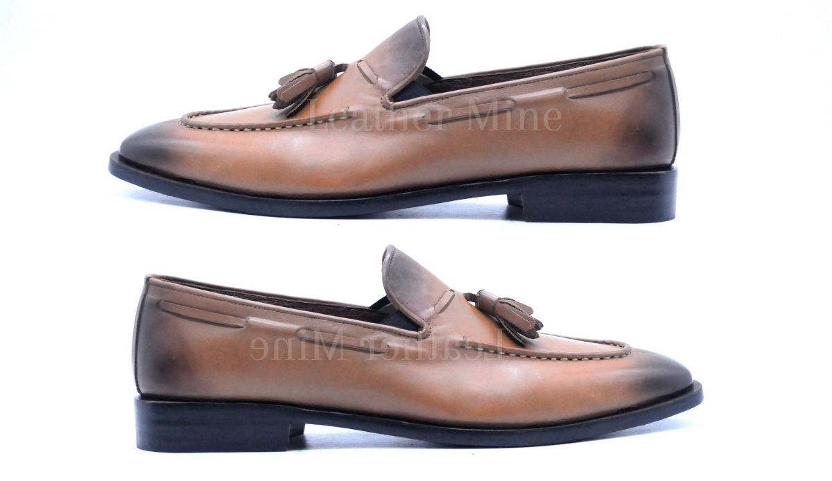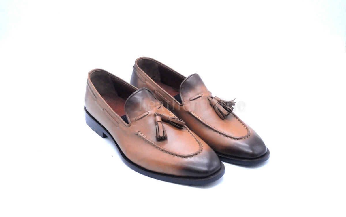 Men's Handmade Tan tassel Loafers Shoes, Leather Dress Shoes Mens