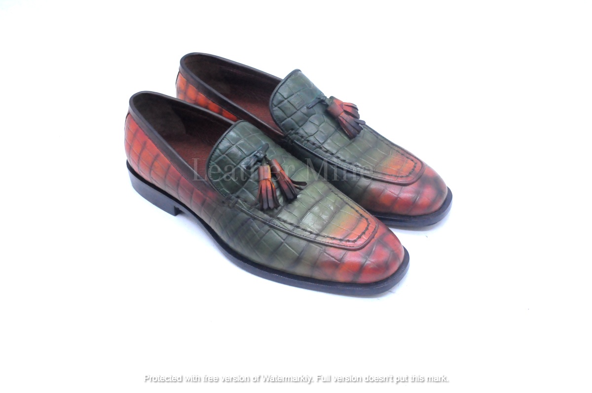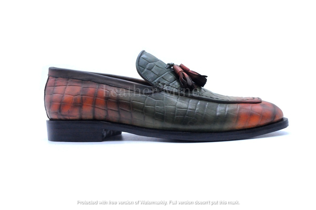 Handmade Two tone tassel Crocodile loafers Custom Made Shoes, Leather Dress Shoes Mens