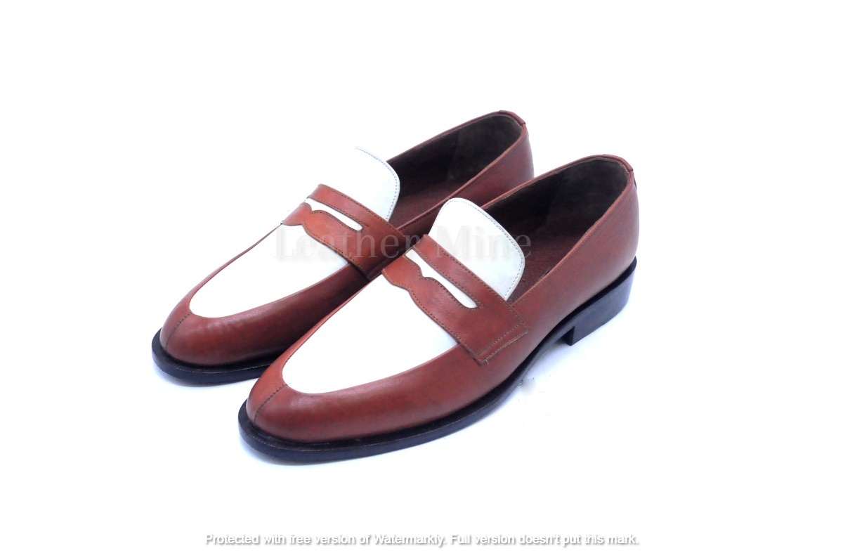 Men's Handmade Two tone Loafers Shoes, Leather Dress Shoes Mens