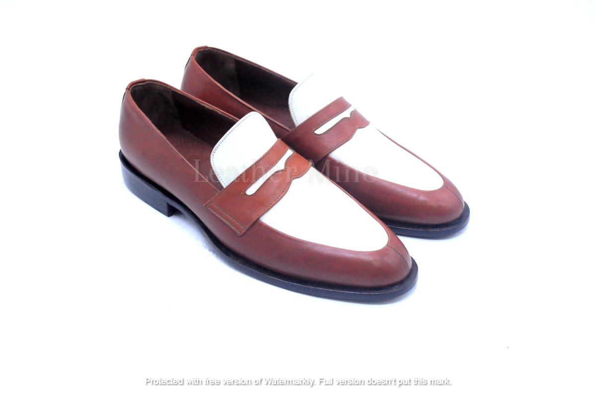 Handmade Men's Two Tone Dress Loafers Custom Made Formal Shoes For Men
