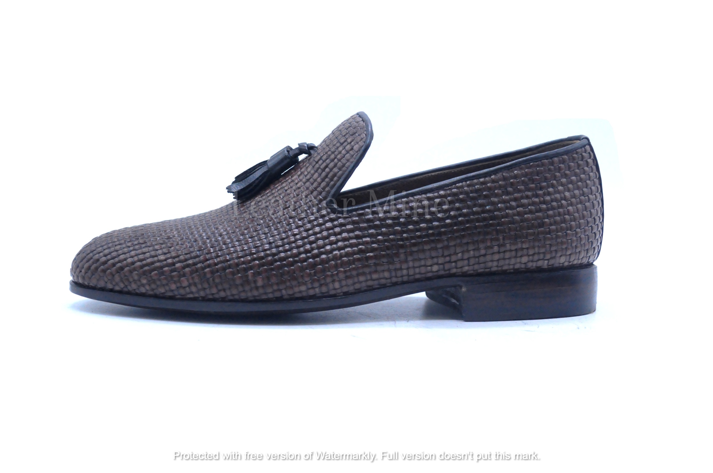 Handmade Men's Brown woven Loafers Custom Made Dress Shoes Mens