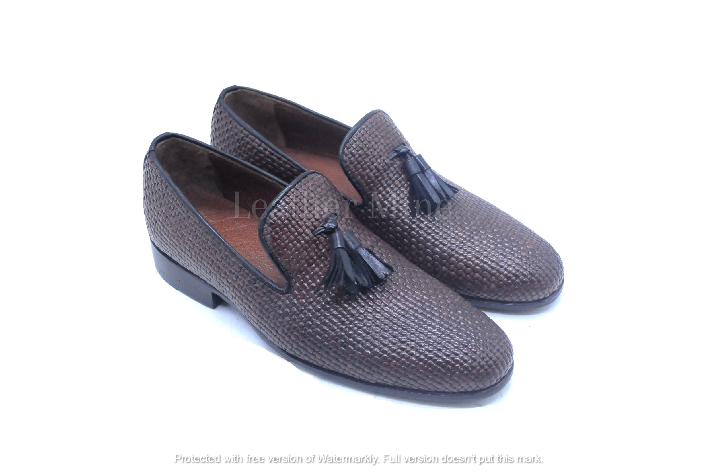 Handmade Men's Brown woven Dress Loafers Custom Made Formal Shoes For Men