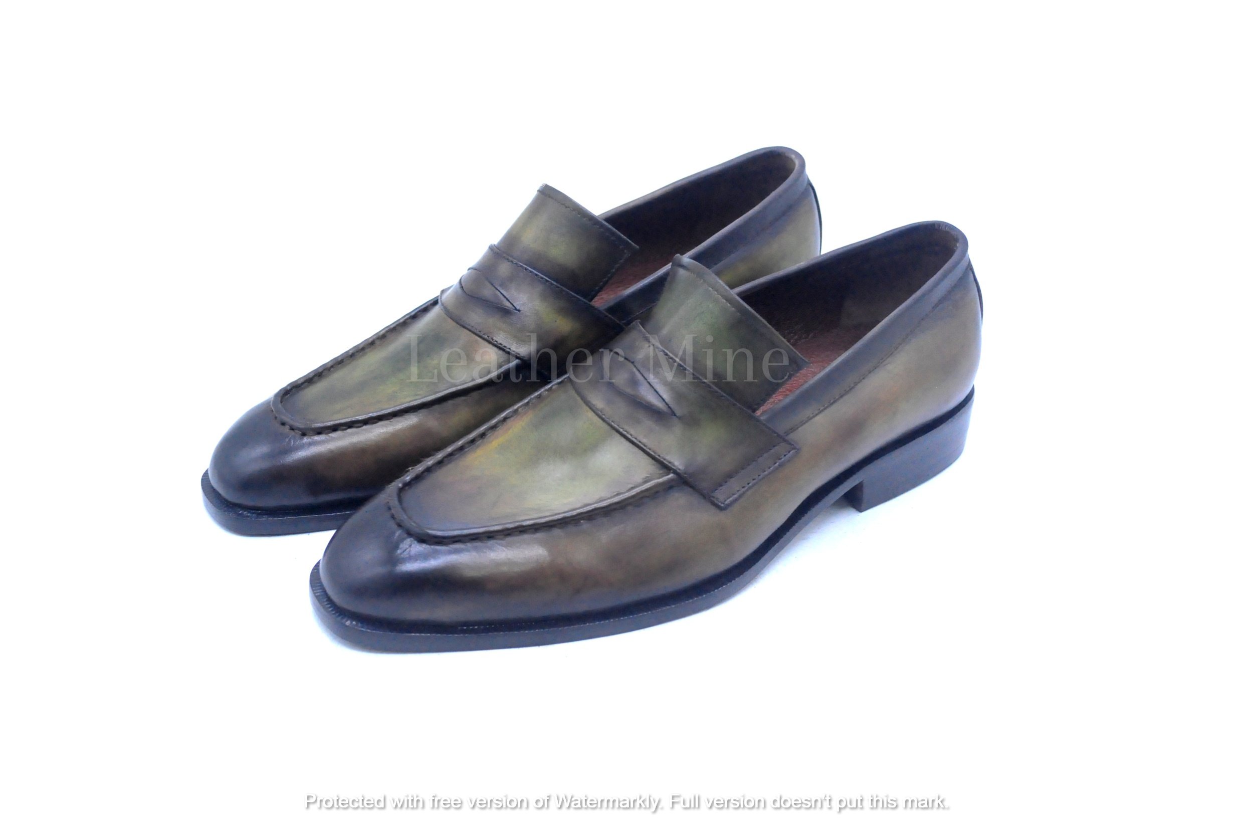Handmade Antique green Loafers Custom Made Shoes, Leather Dress Shoes Mens