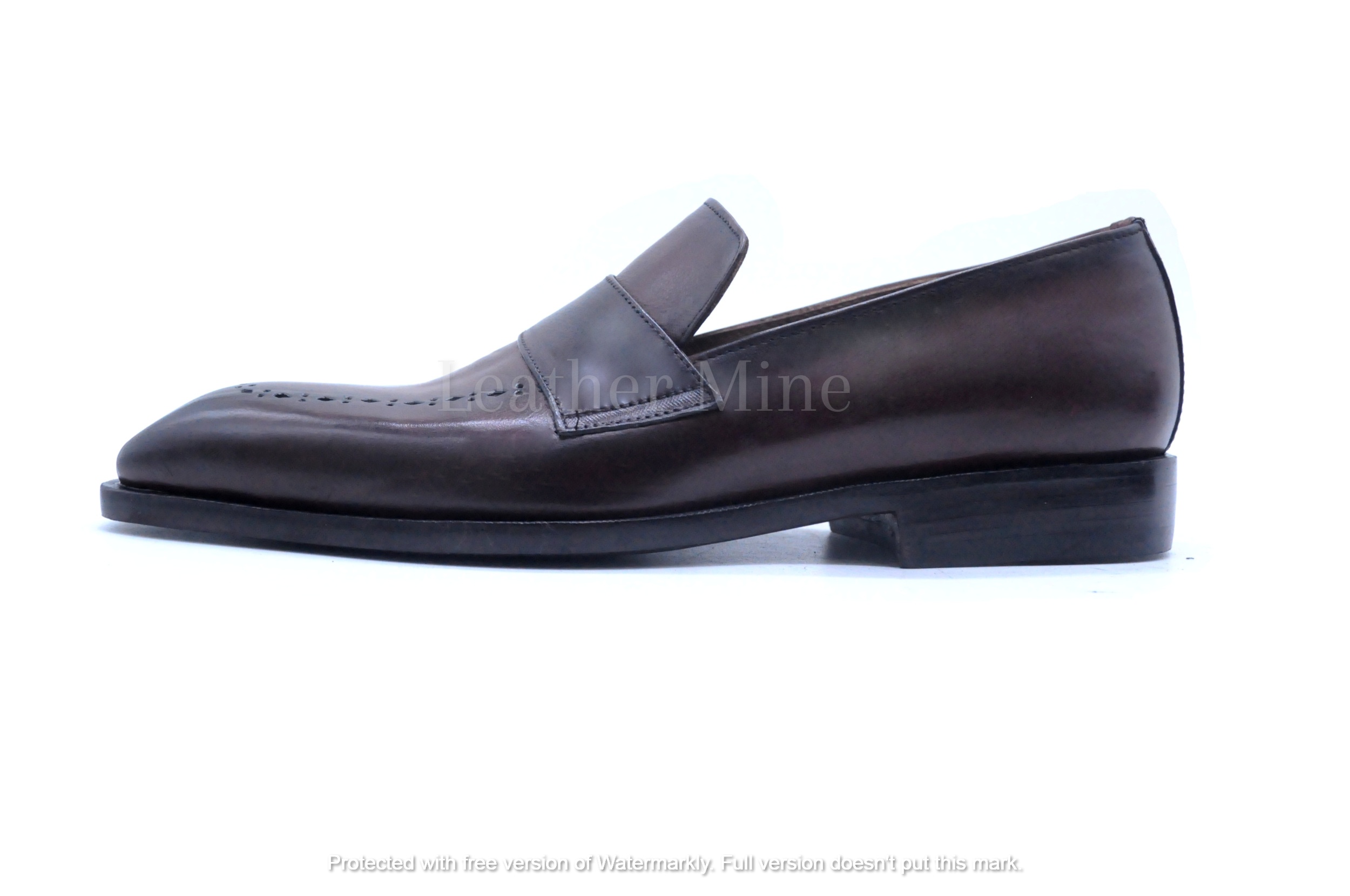Leather Dress Shoes Mens, Handmade Ox blood patina Loafers Custom Made Shoes